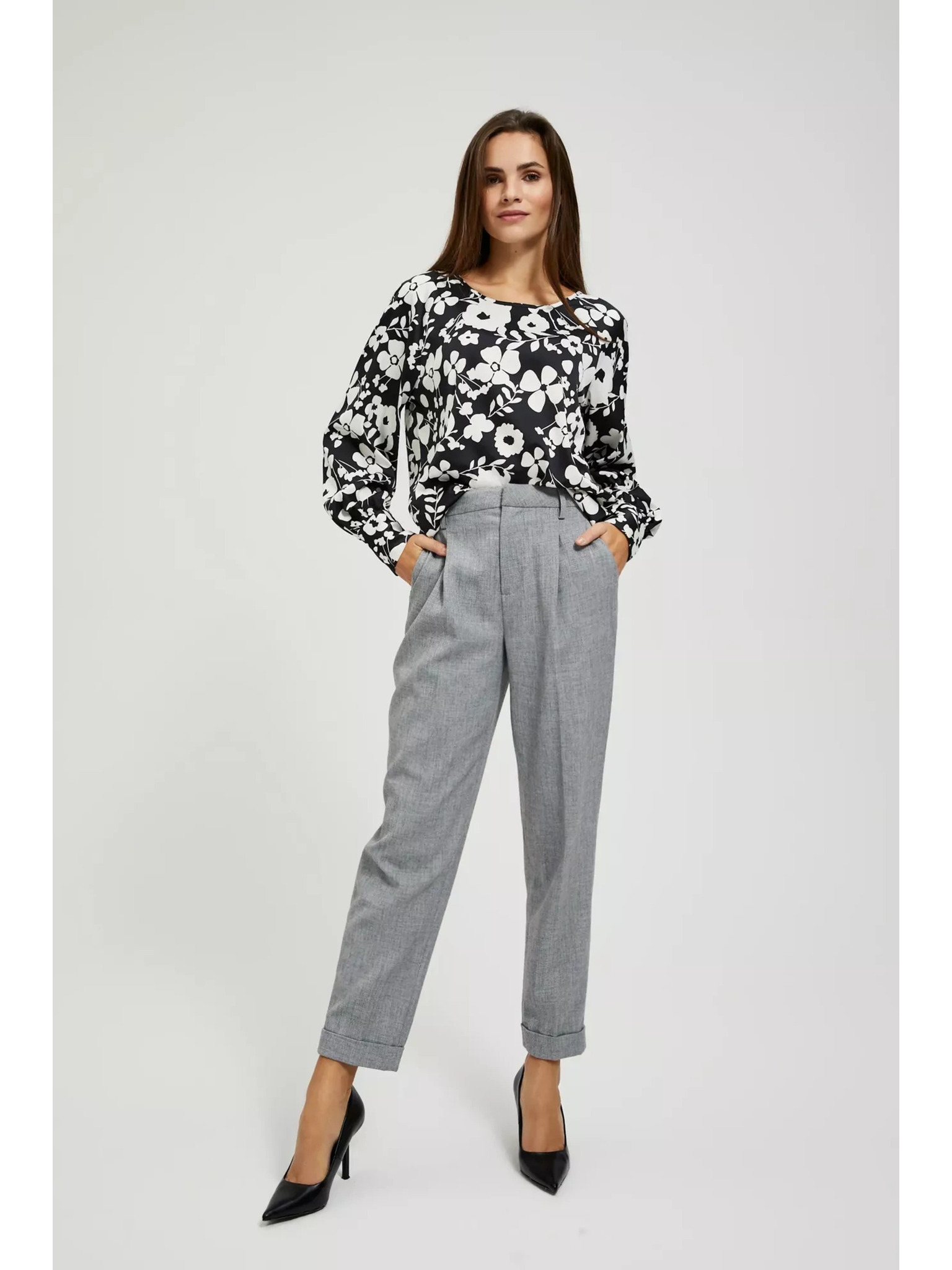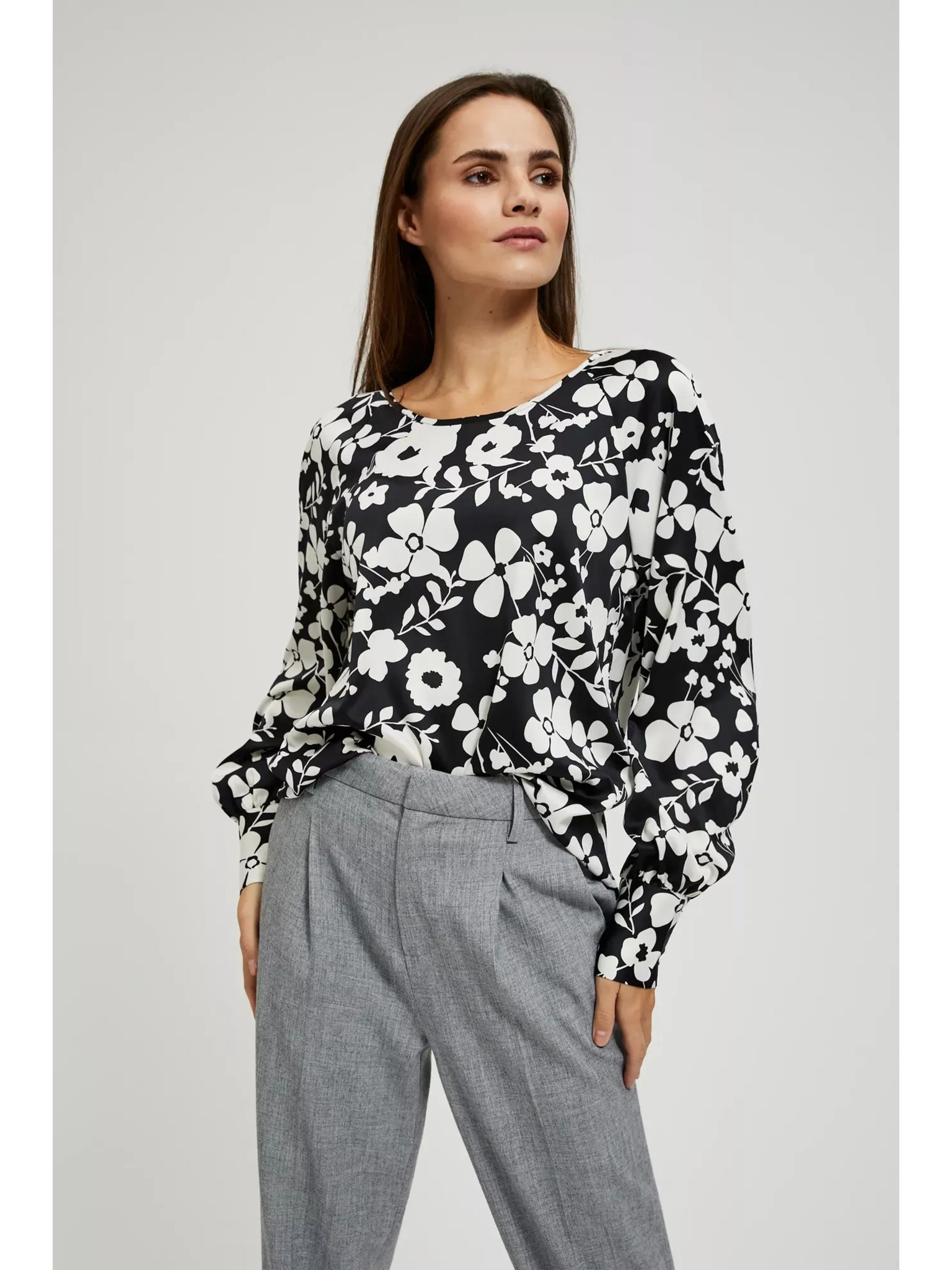 Crna košulja Moodo s cvjetnim uzorkom i širokim rukavima