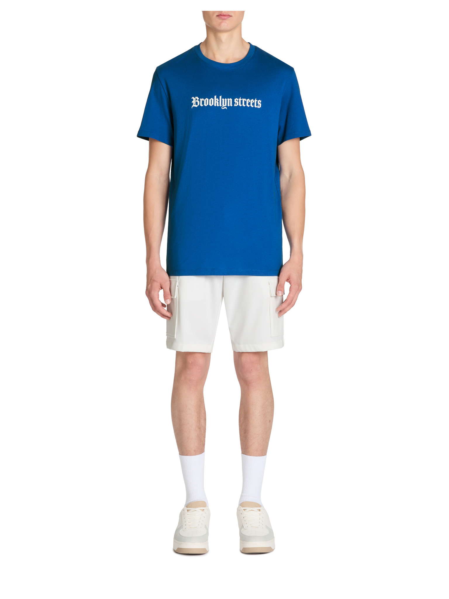 Muška pamučna majica LOOSE FIT s okruglim vratom - plava V7 OM-TSBC-0267 Ombre Clothing