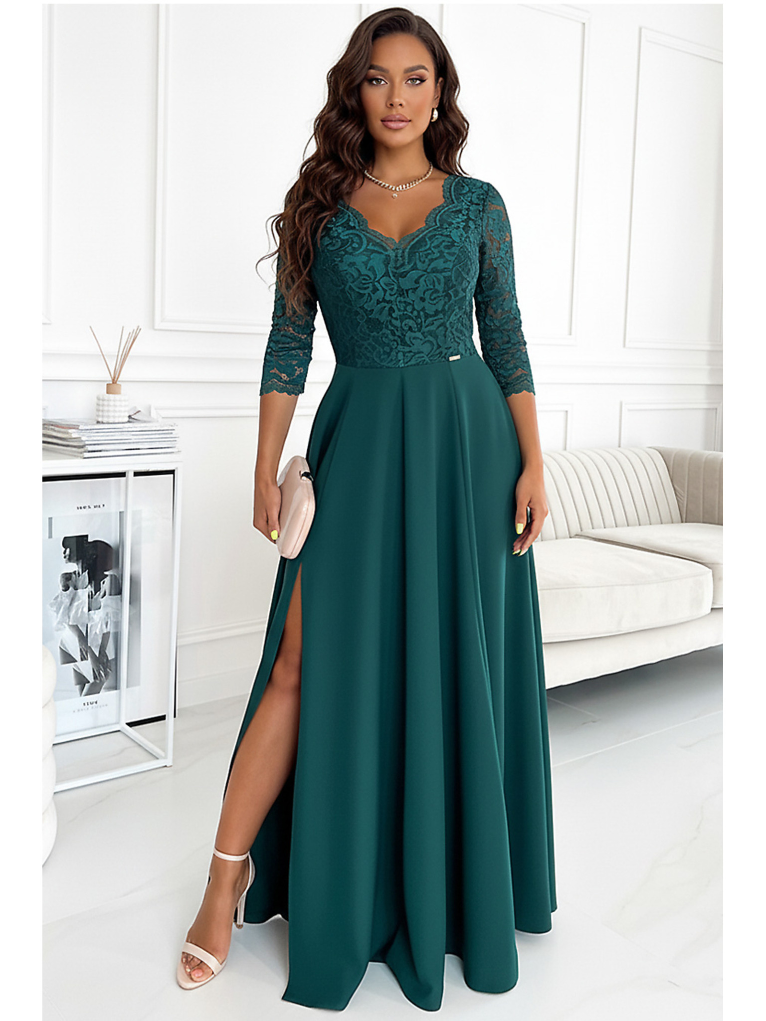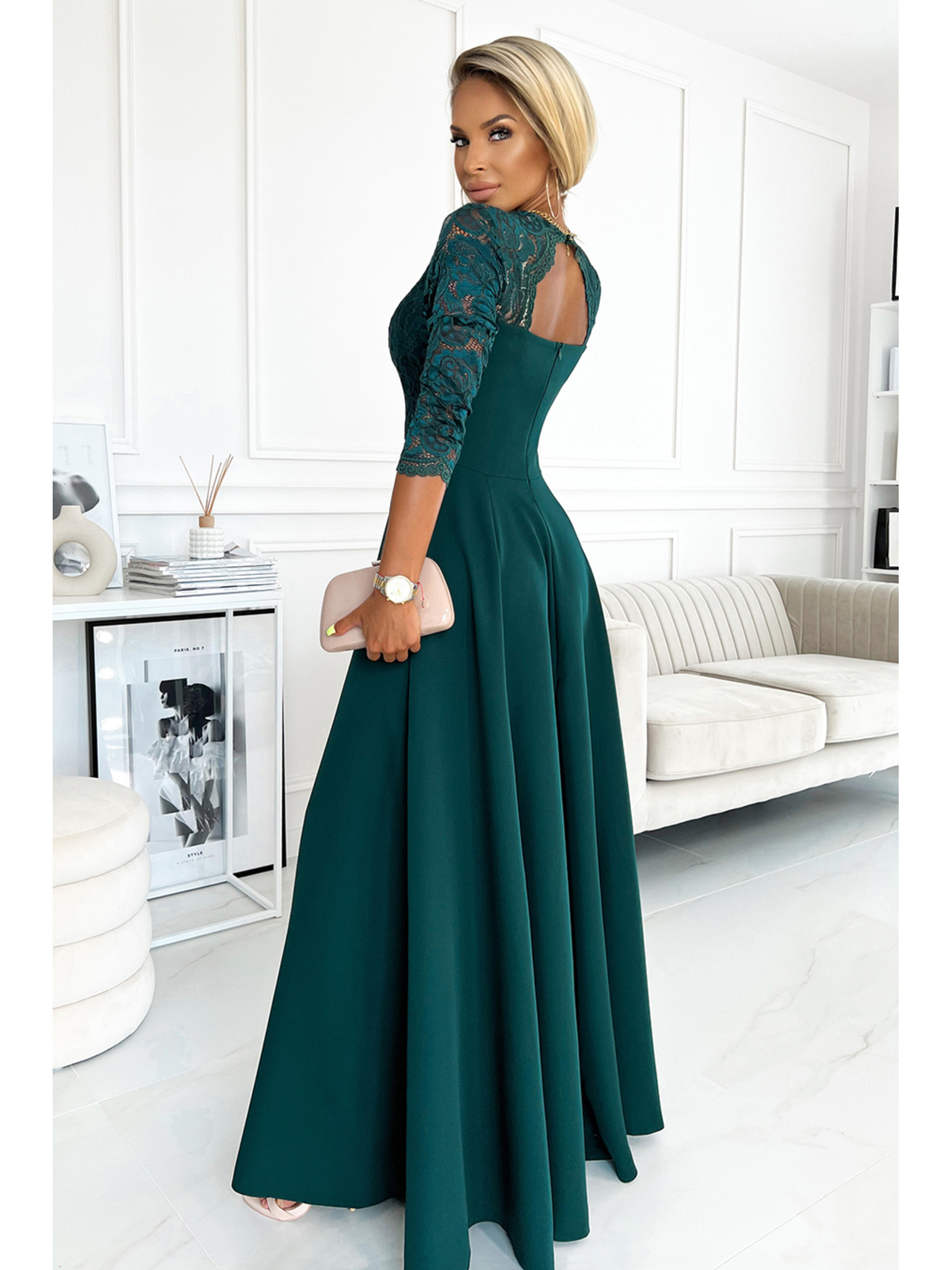 Elegantne haljine NELL s volanima na ramenima - bočasto zelene