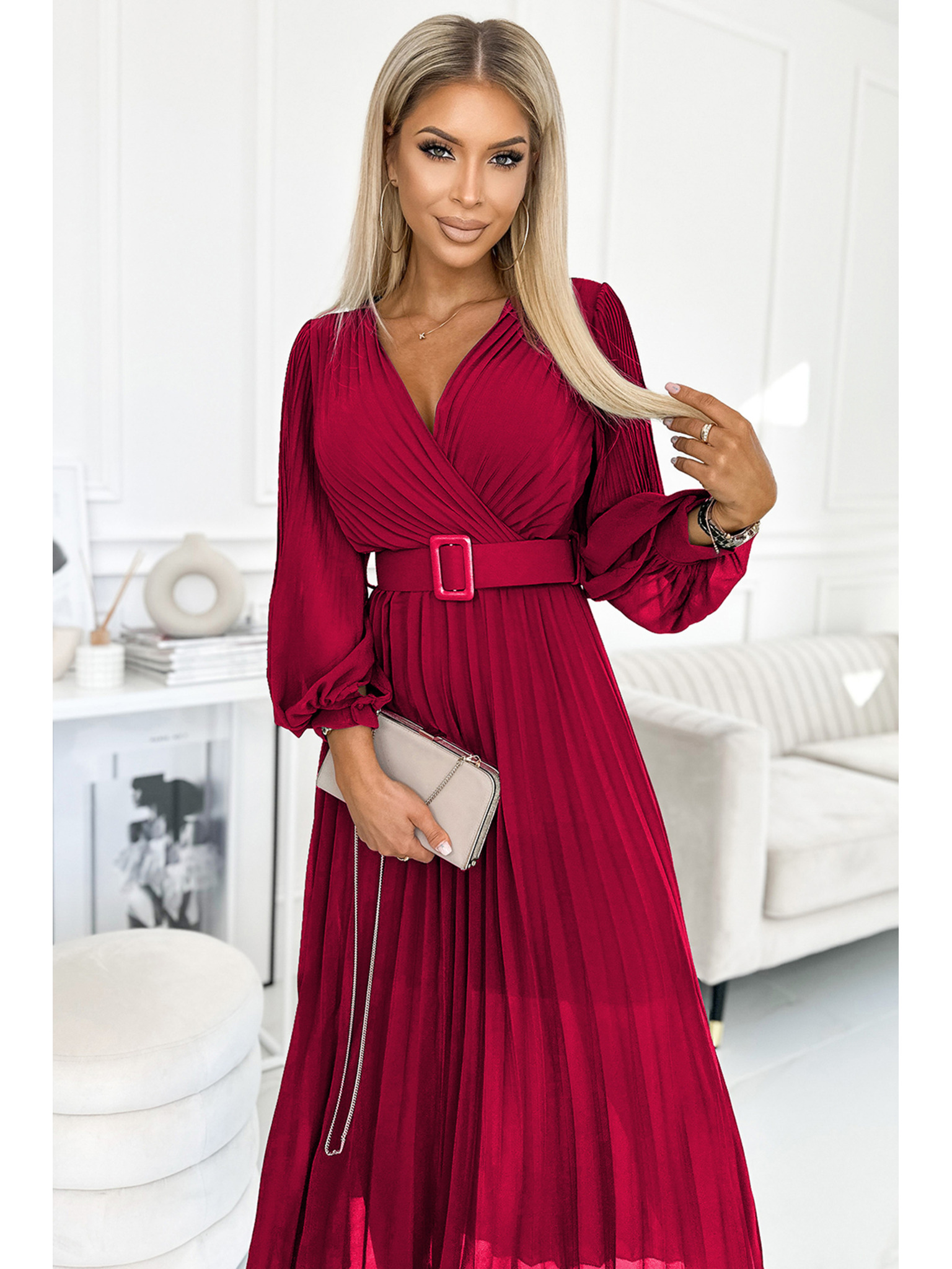 564-8 CALLIE Midi haljine s izrezom na ramenima - vinsko crvena