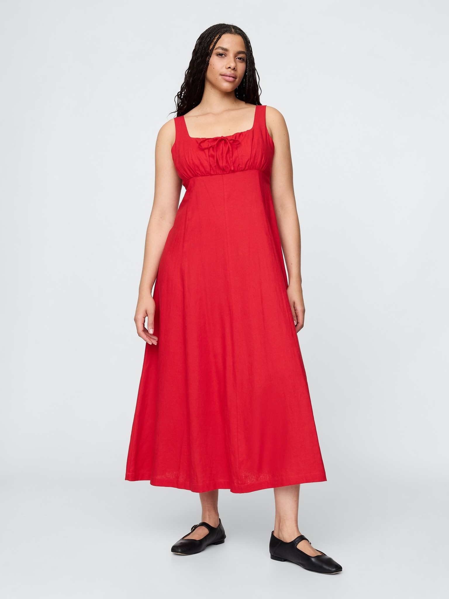 562-7 NASTIA Duge haljine s izrezom i kratkim rukavima - crvene