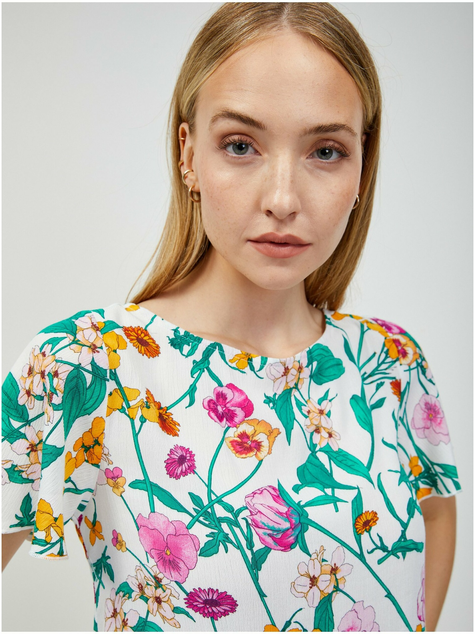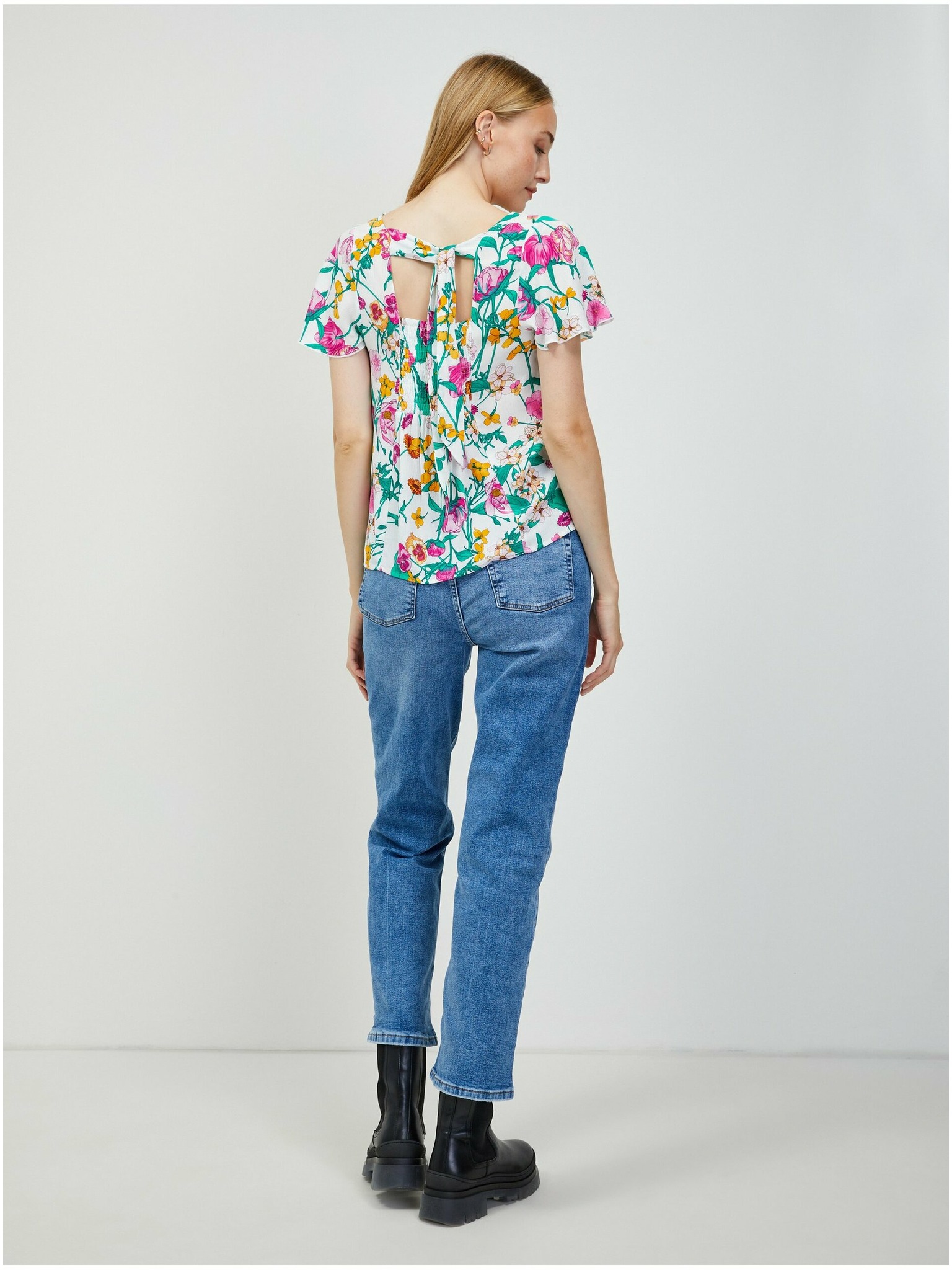 Zeleno-bijela bluza cvjetnog uzorka s vezanjem na leđima ORSAY