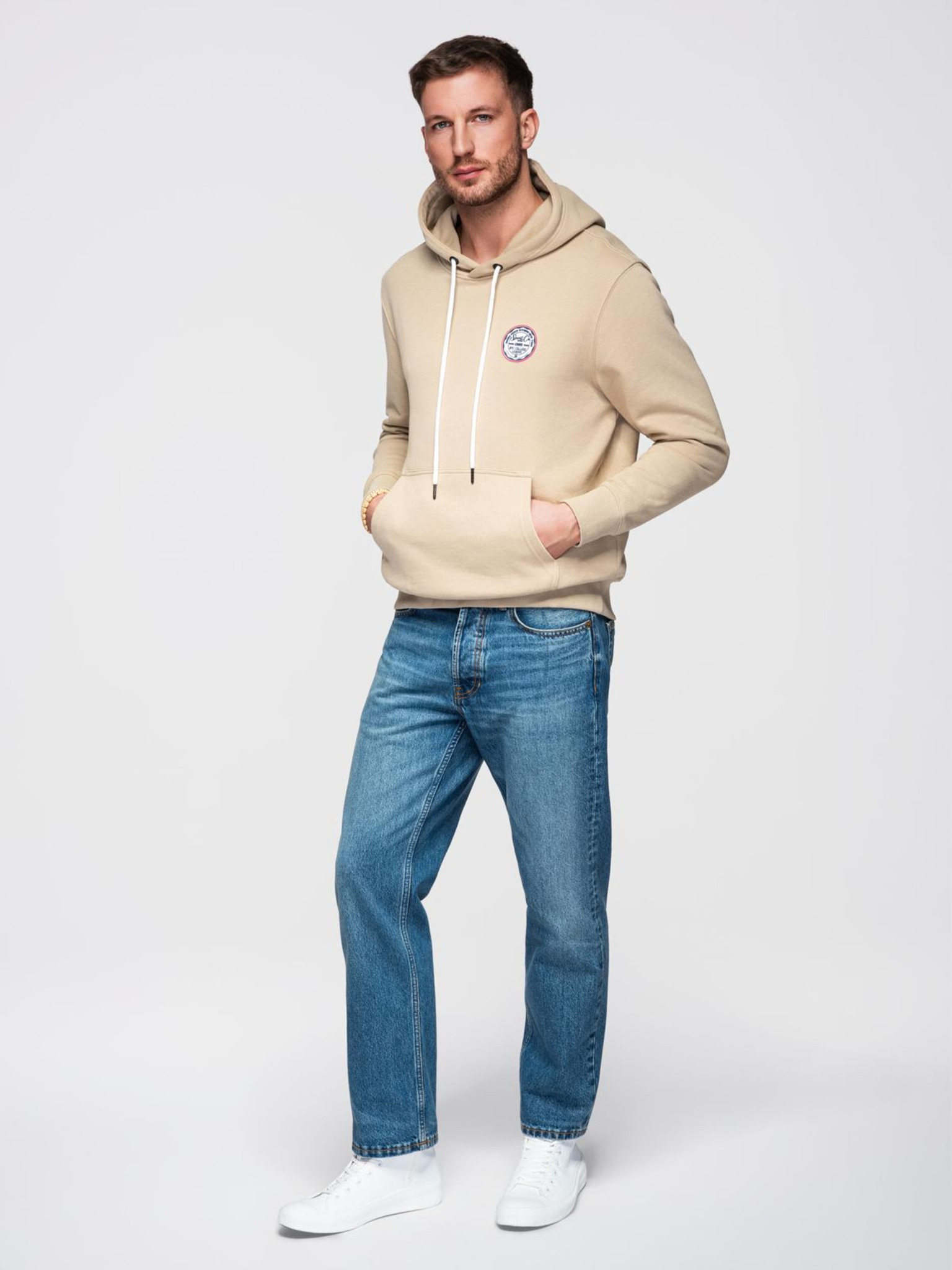 Muška mikina BASIC s klokanskom torbom i kapuljačom - светлo bež V1 B1674 Ombre Clothing