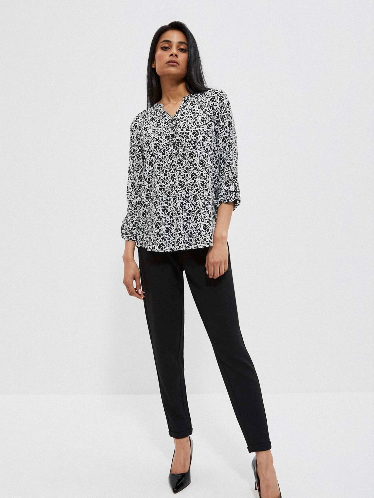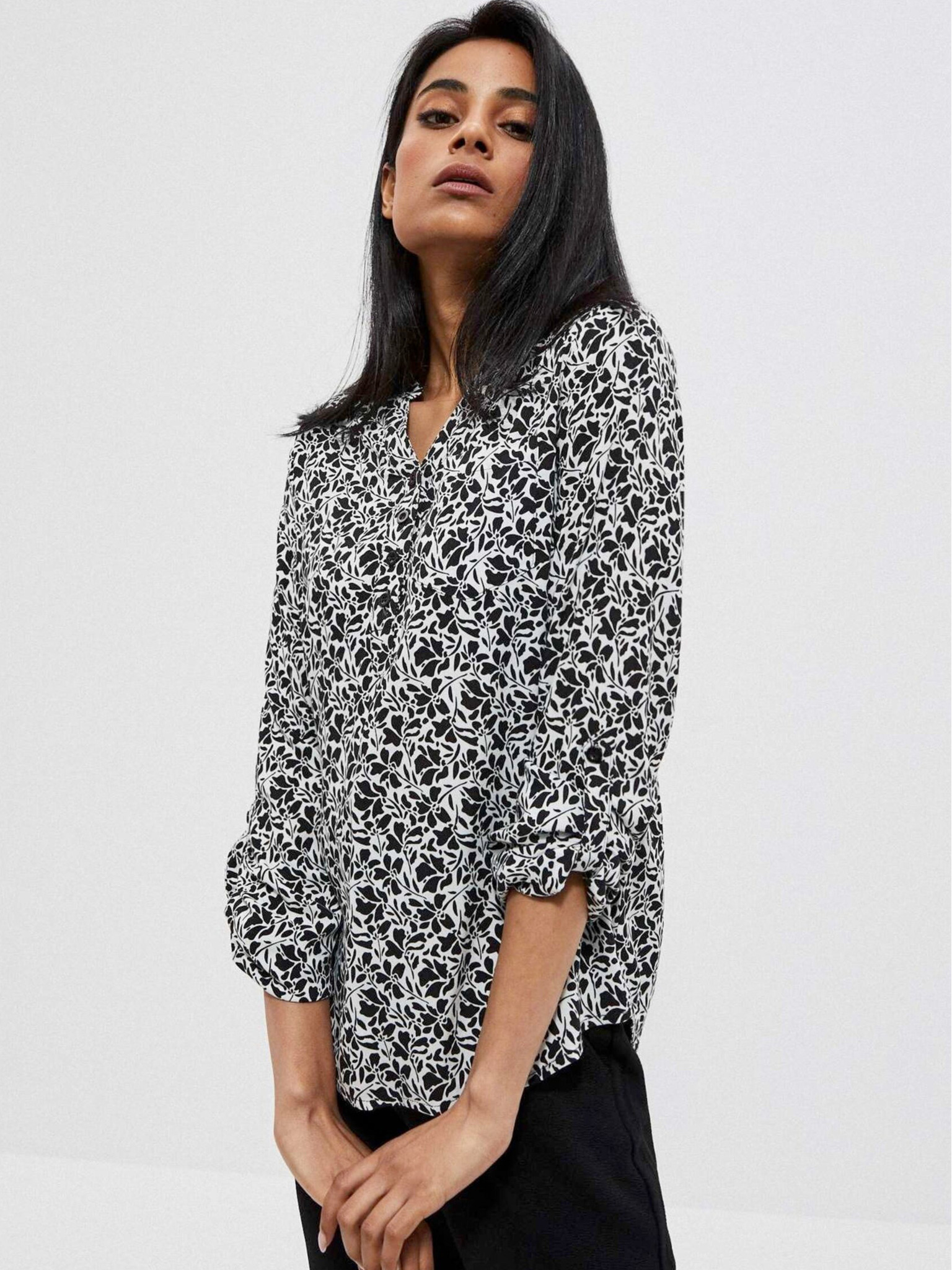 Bijelo-crna ženska Moodo cvjetna košulja