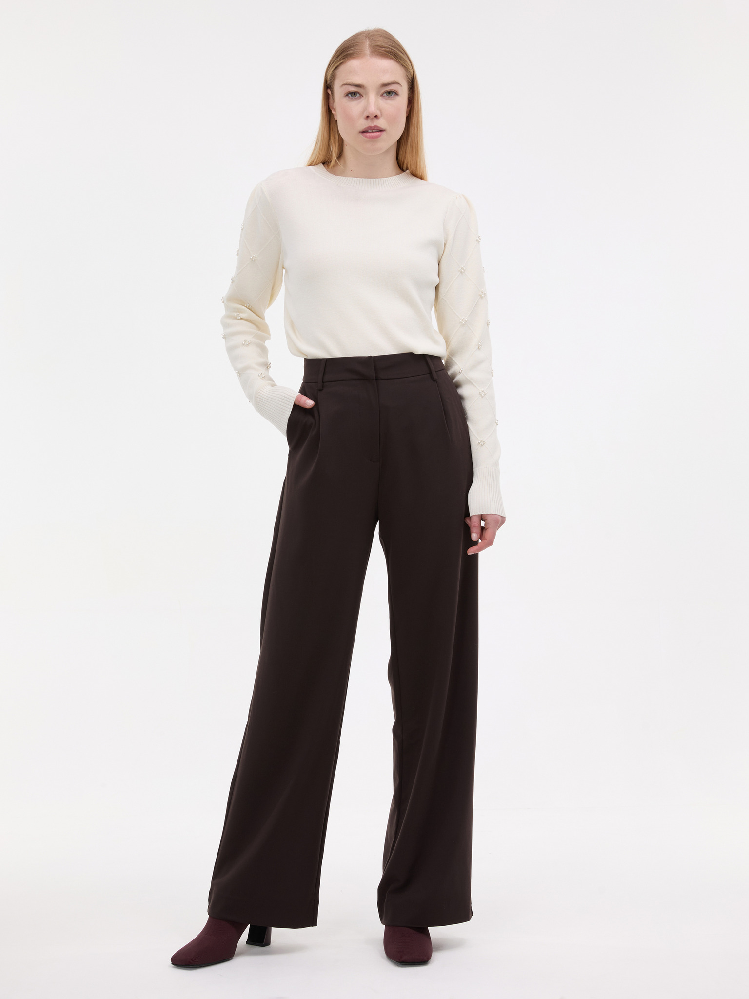 Bež džemper s perlicama Moodo