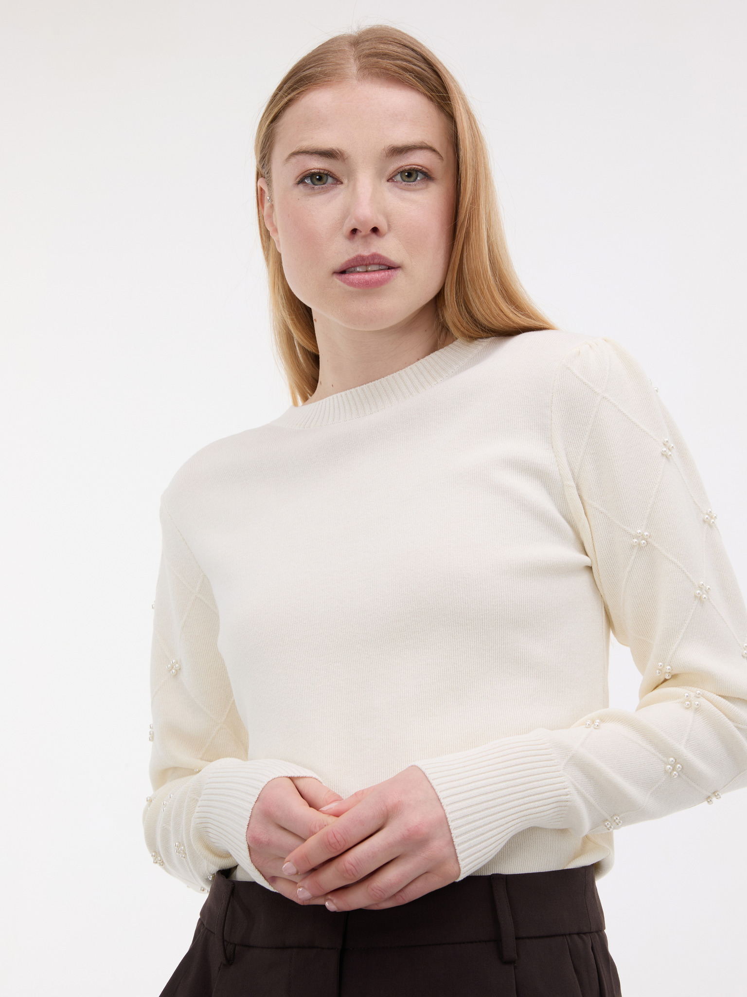 Pulover s ukrašenim pletenjem ecru Moodo