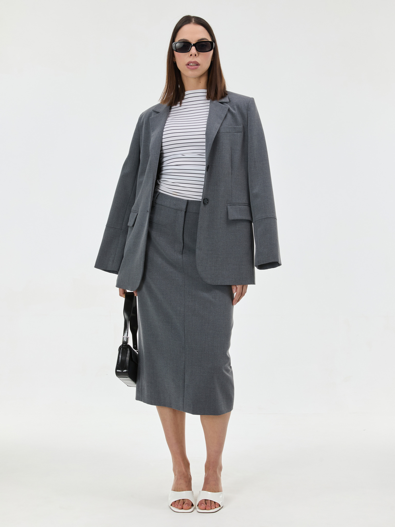 Uska suknja do koljena siva Moodo