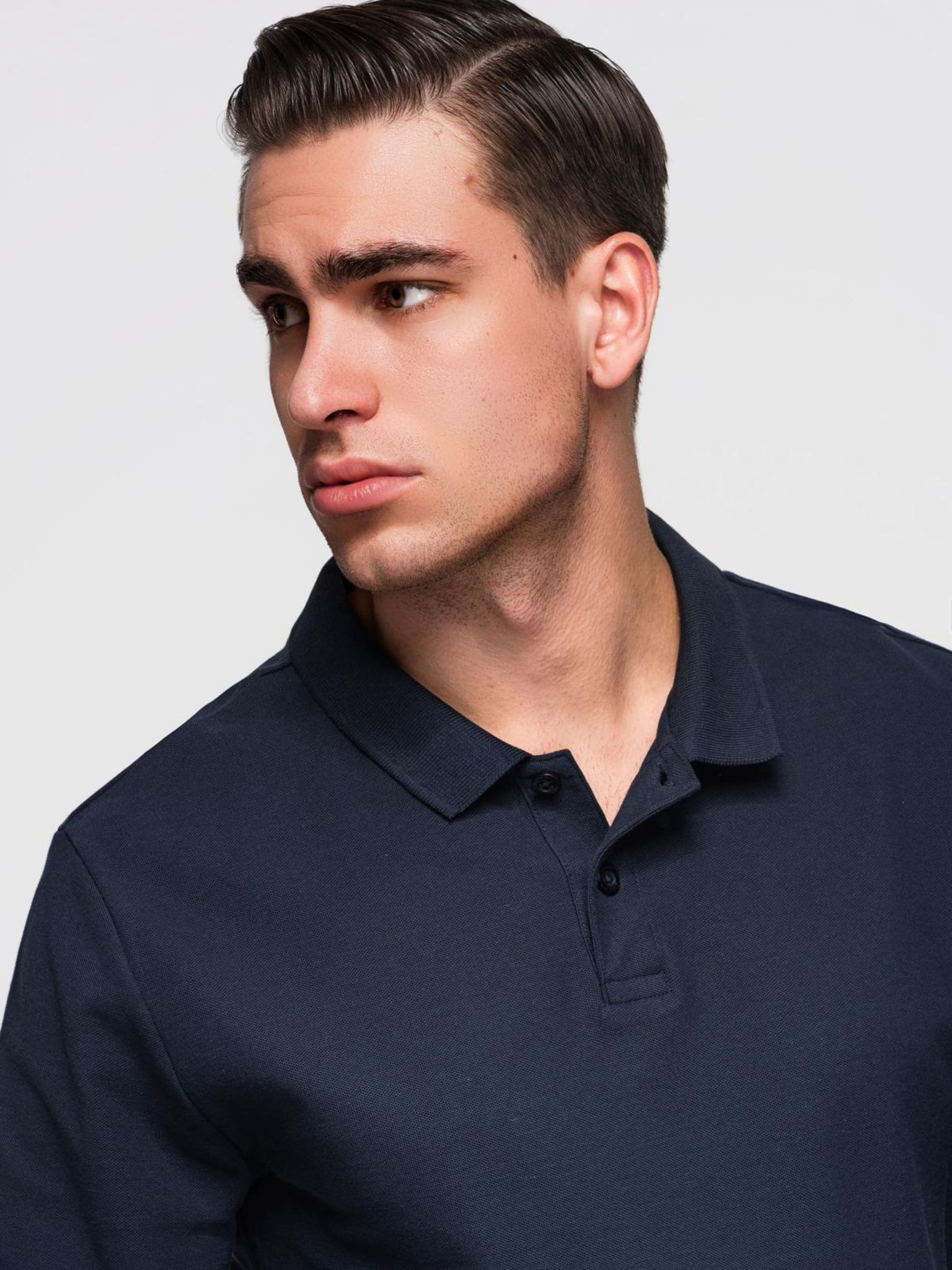 Muška majica BASIC s dugim rukavima i polo ovratnikom - bijela V1 OM-POBL-0162 Ombre Clothing