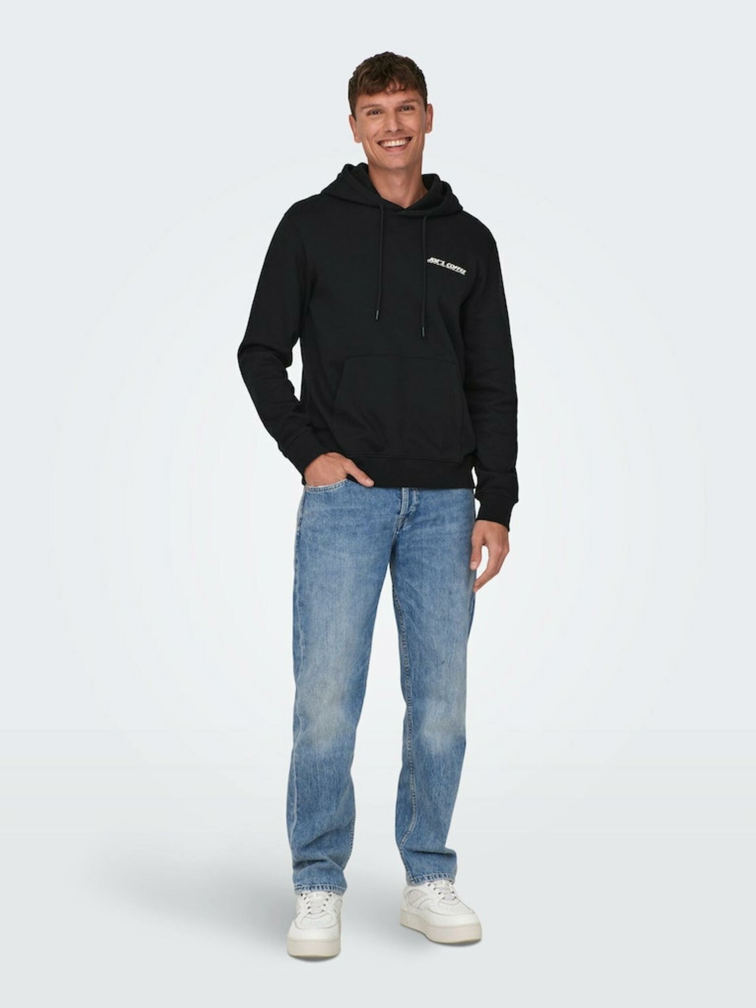 Muška mikina s džepom na prsima BASIC s kapuljačom - crna V5 B1674 Ombre Clothing
