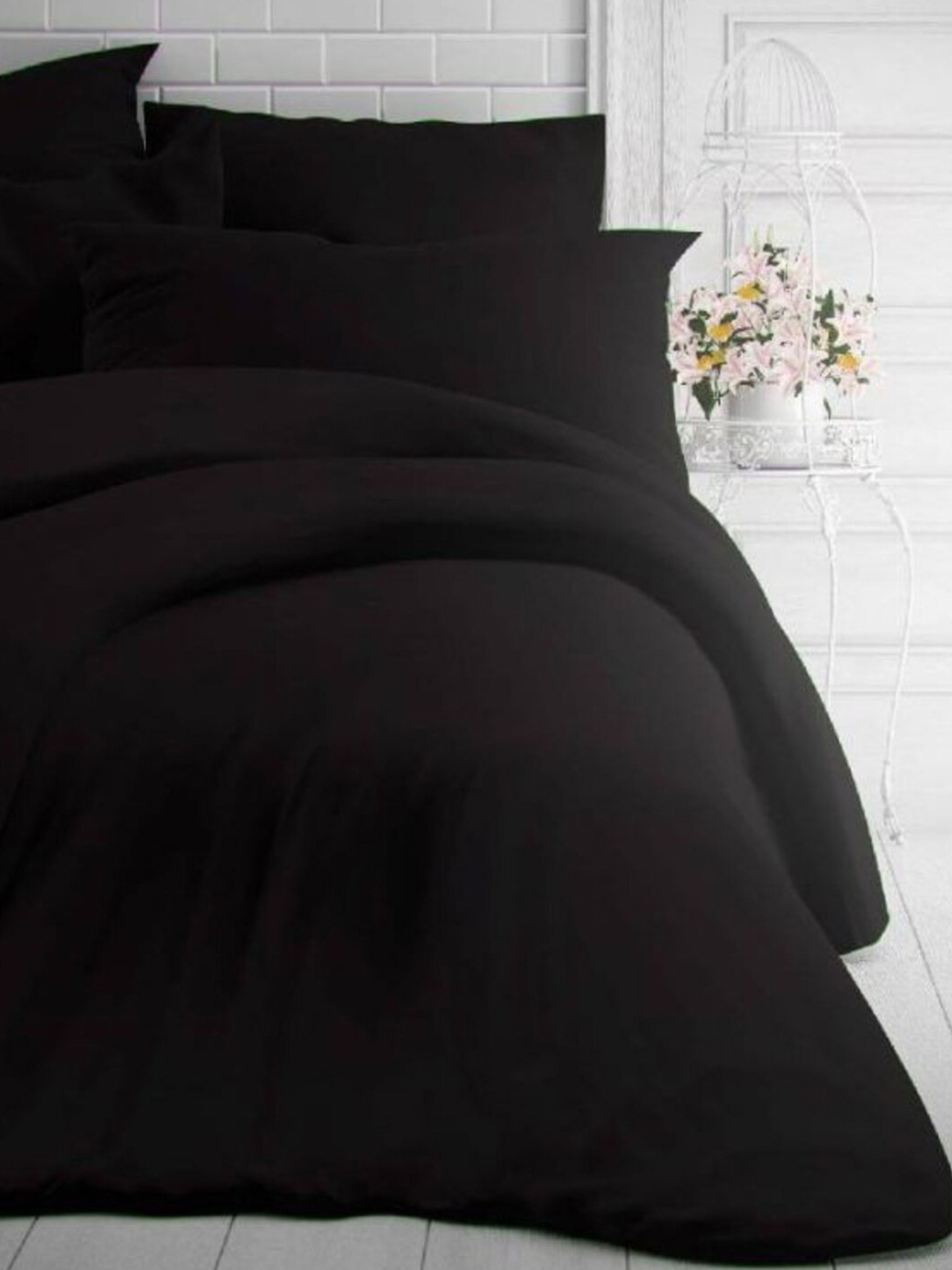 Francusko jednobojna pamučna posteljina 240x200, 70x90cm crna