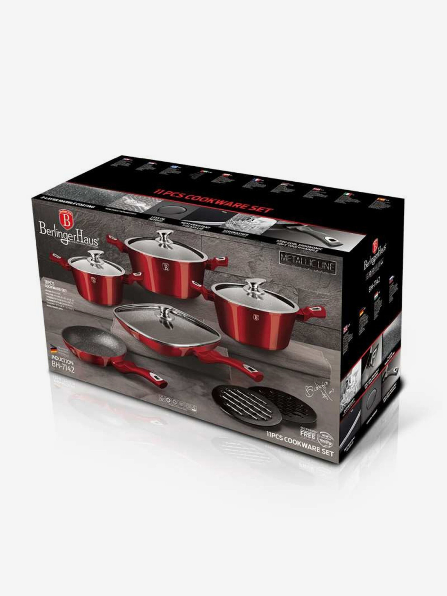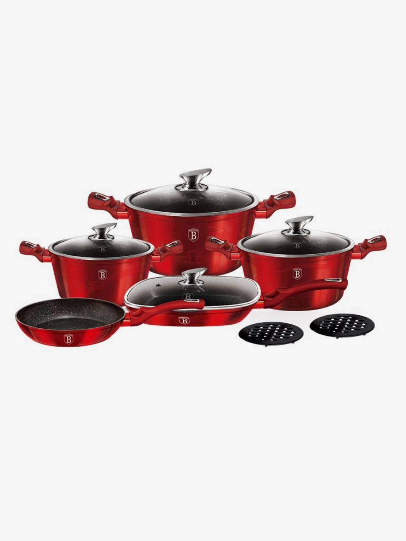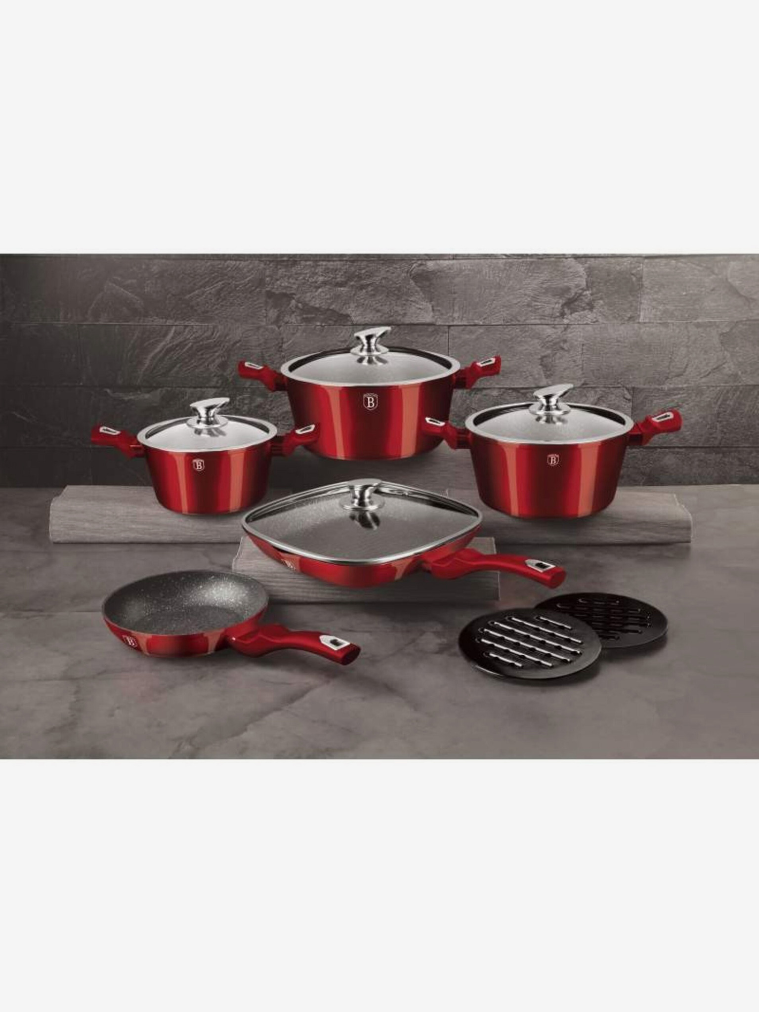 Tava s uklonjivom ručkom set 5 kom Burgundy Metallic Line roštilj BERLINGERHAUS
