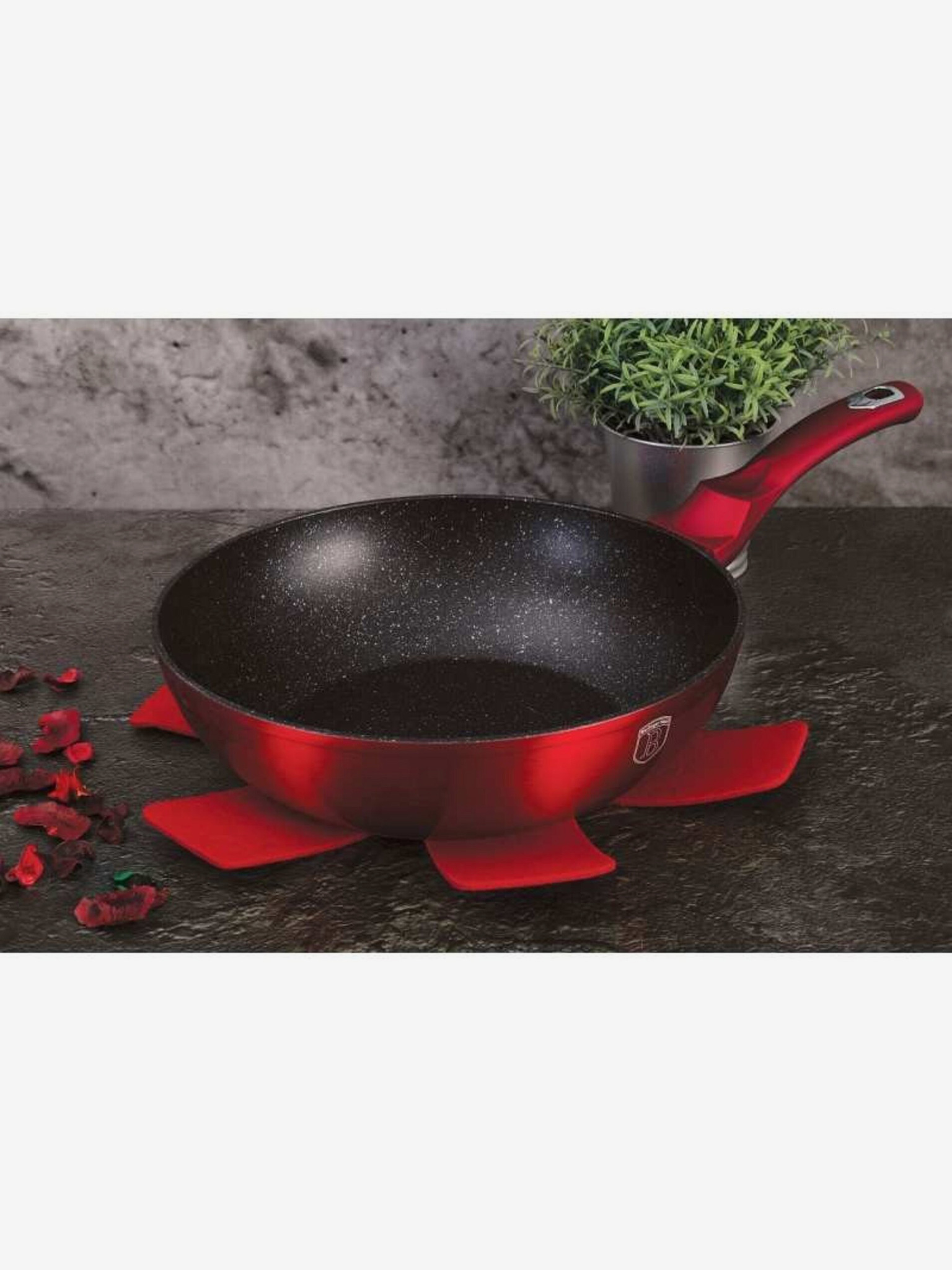 WOK tava s poklopcem s mramornom površinom 28 cm Burgundy Metallic Line BERLINGERHAUS