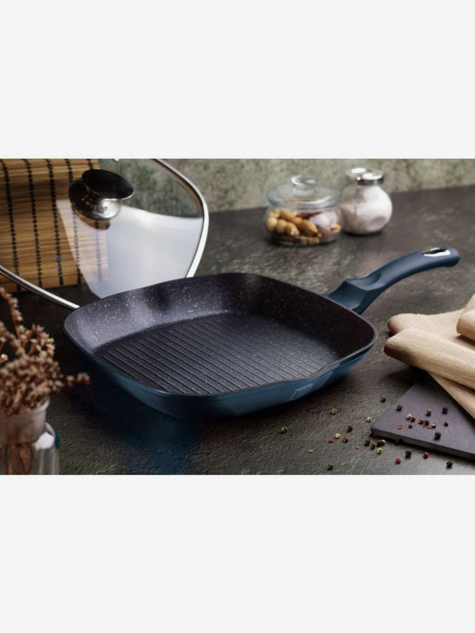 Grill tava s mramornom površinom i poklopcem 28 cm BERLINGERHAUS Metallic Line Aquamarine Edition