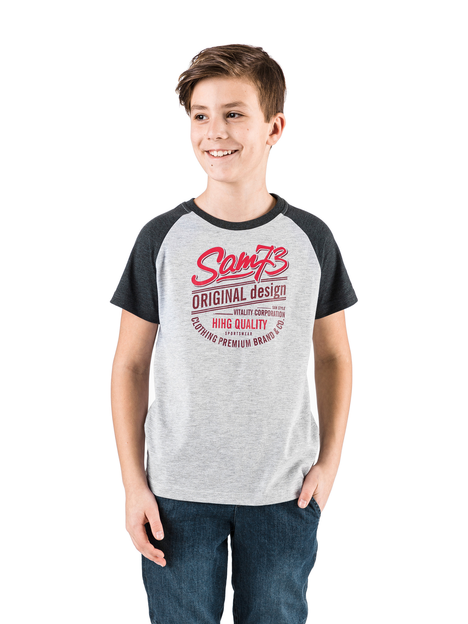 Plavo-siva dječačka majica kratkih rukava s brindovima SAM 73 Kallan