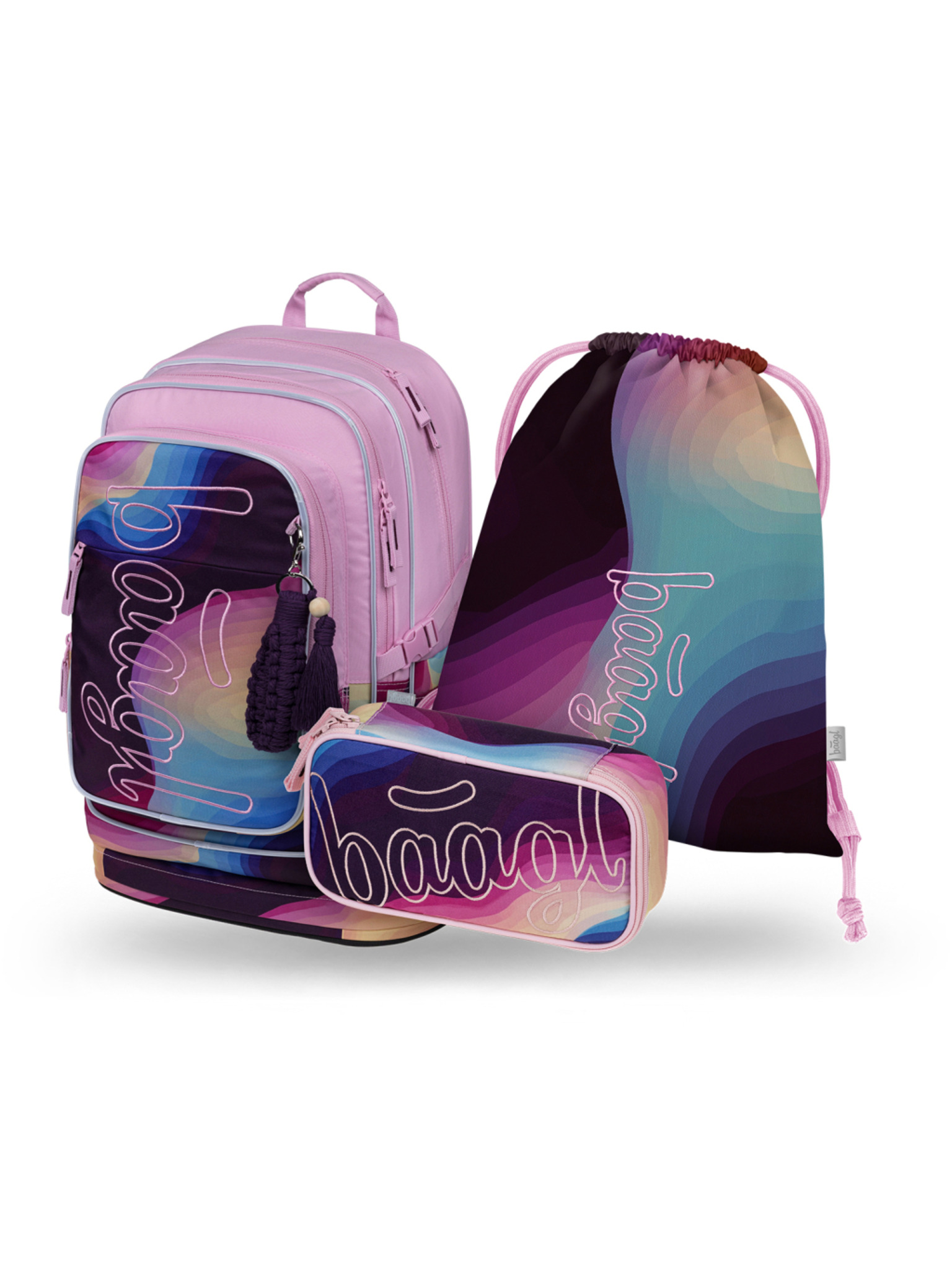 BAAGL SET 5 Ergo Plameňáci: aktovka, penal, sáček, zástěra, peněženka