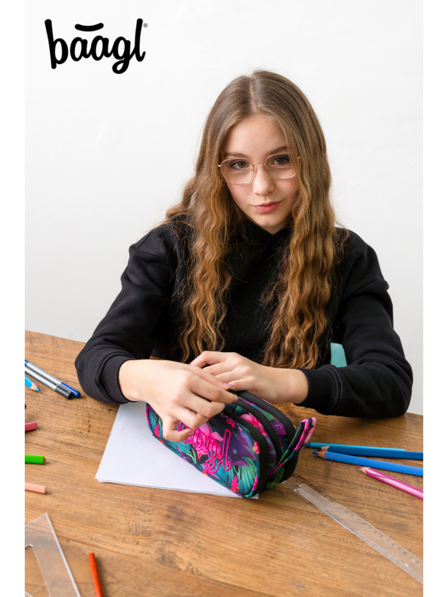 Baagl ružičasta jednoslojna školska pernica Flamingos