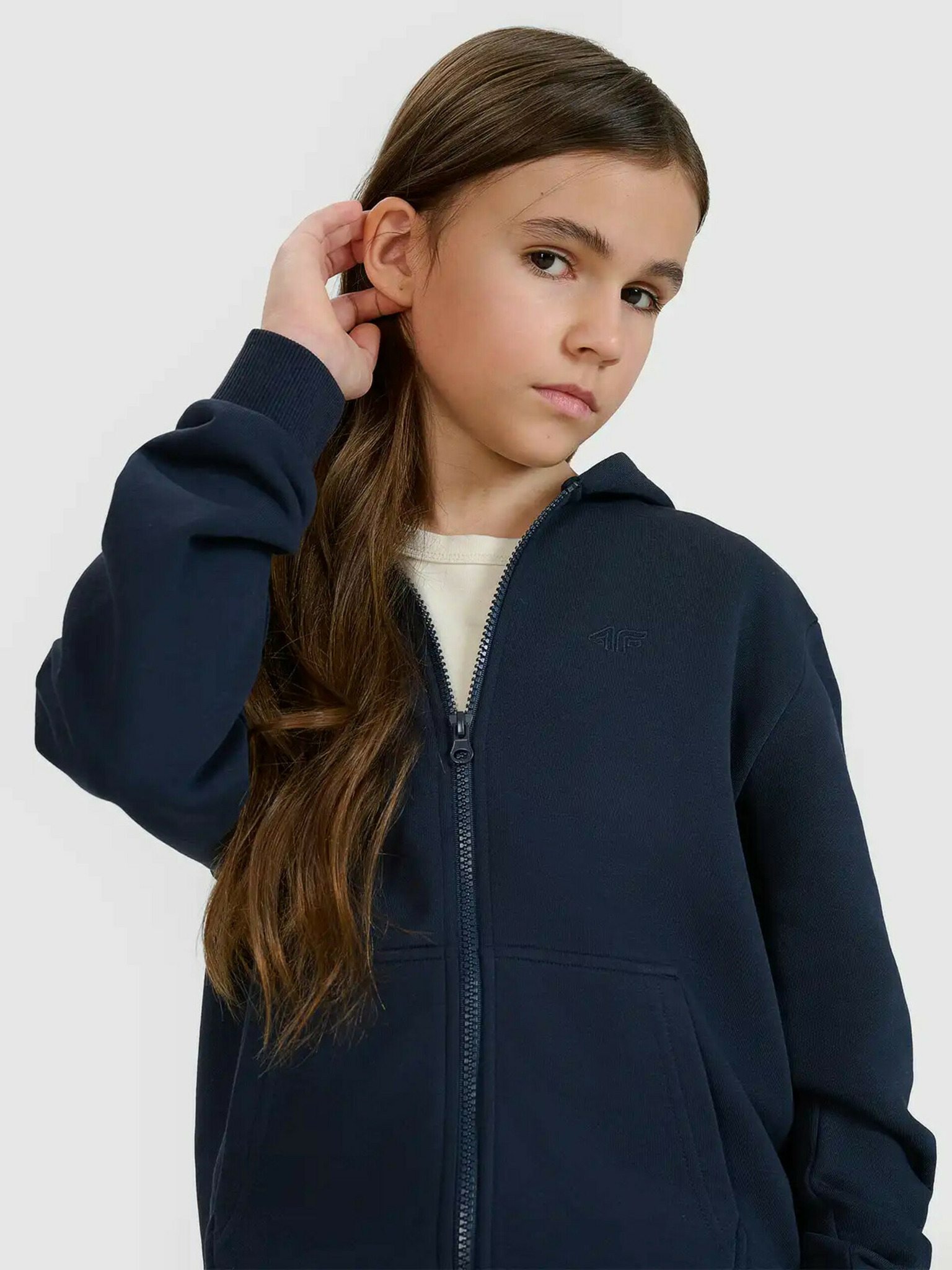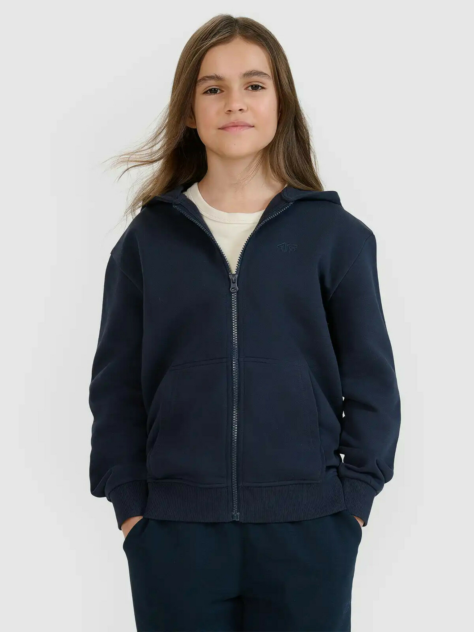 Trenirka za djevojčice, hoodie na patentni zatvarač s kapuljačom 4F