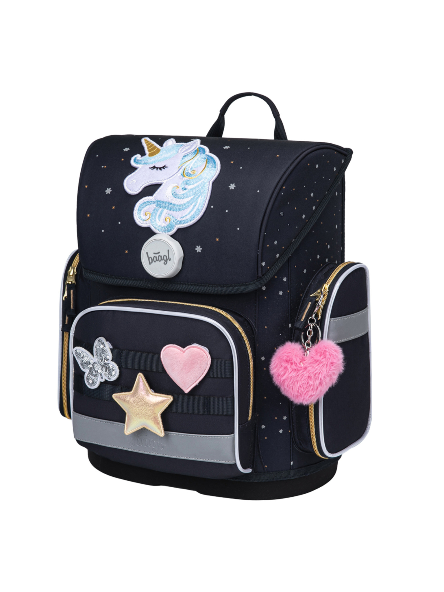 BAAGL SET 5 Ergo Unicorn Gold: aktovka, pernica, vrećica, pregača, novčanik
