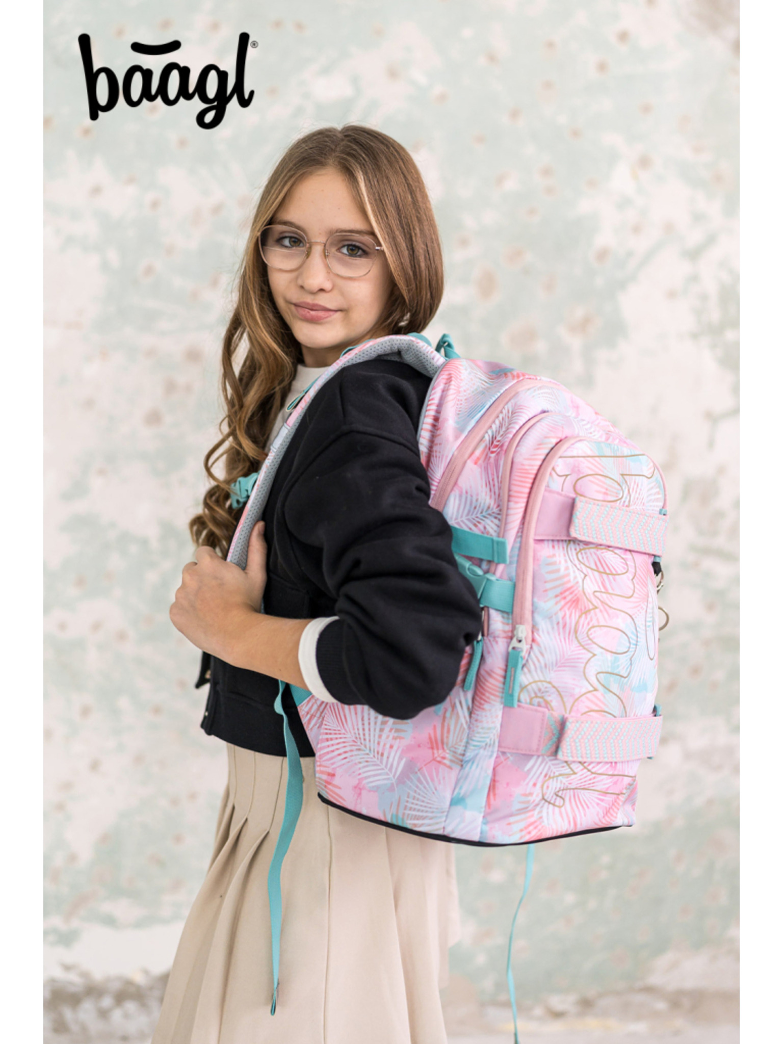 Ružičasti školski set - ruksak, pernica, torba Baagl Core Painting
