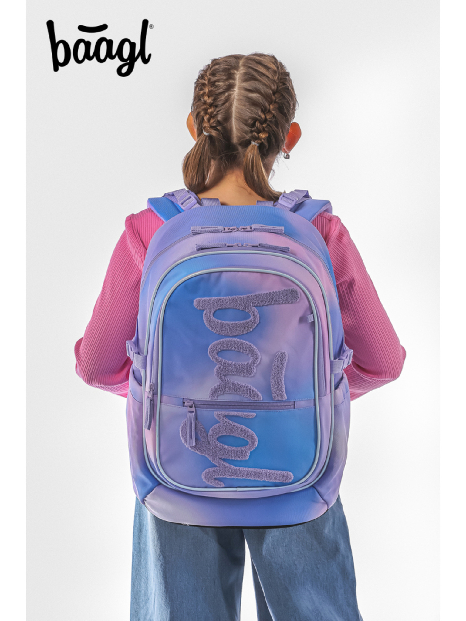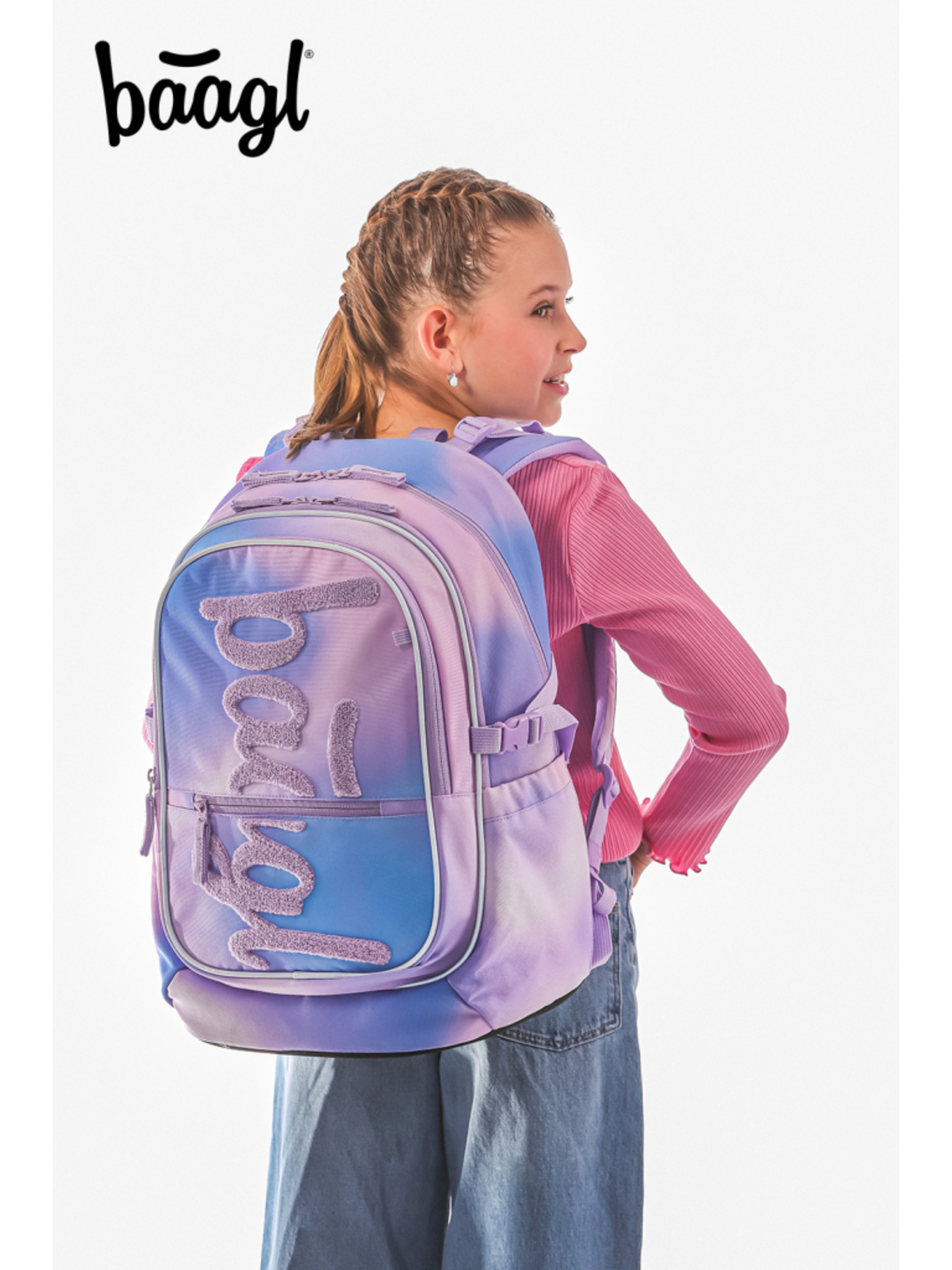 BAAGL SET 5 Core Logo ružičasta: ruksak, pernica, vreća, ledvinka, navlaka za prijenosno računalo GRS