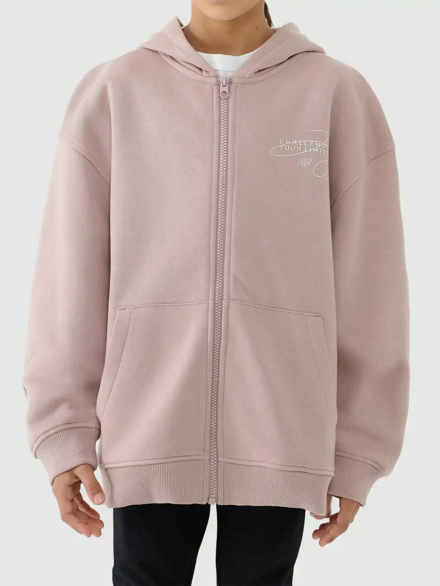Trenirka za djevojčice, hoodie na patentni zatvarač s kapuljačom 4F
