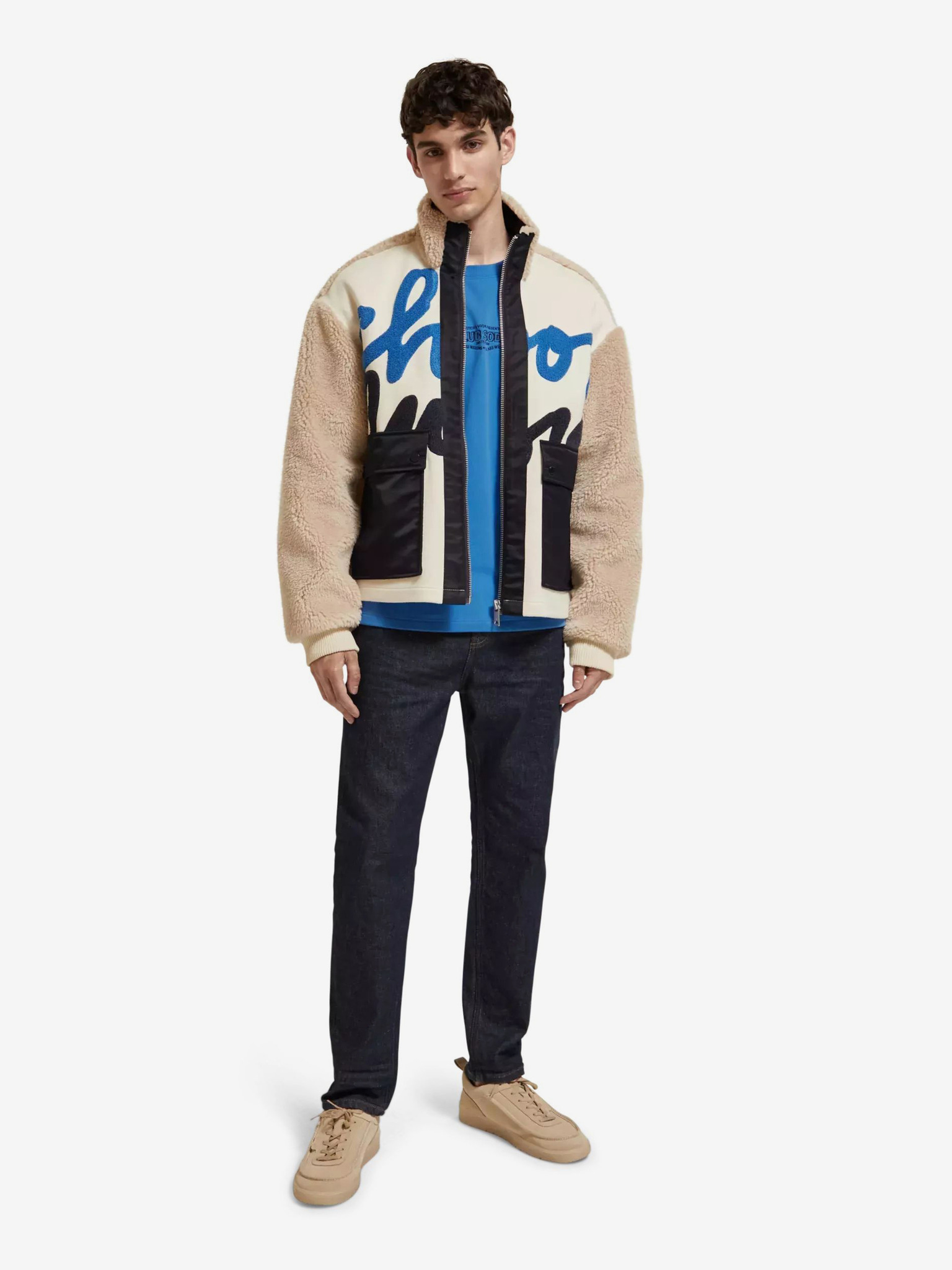 Muška lagana šarena sportska jakna s flisom bež Ombre Odjeća