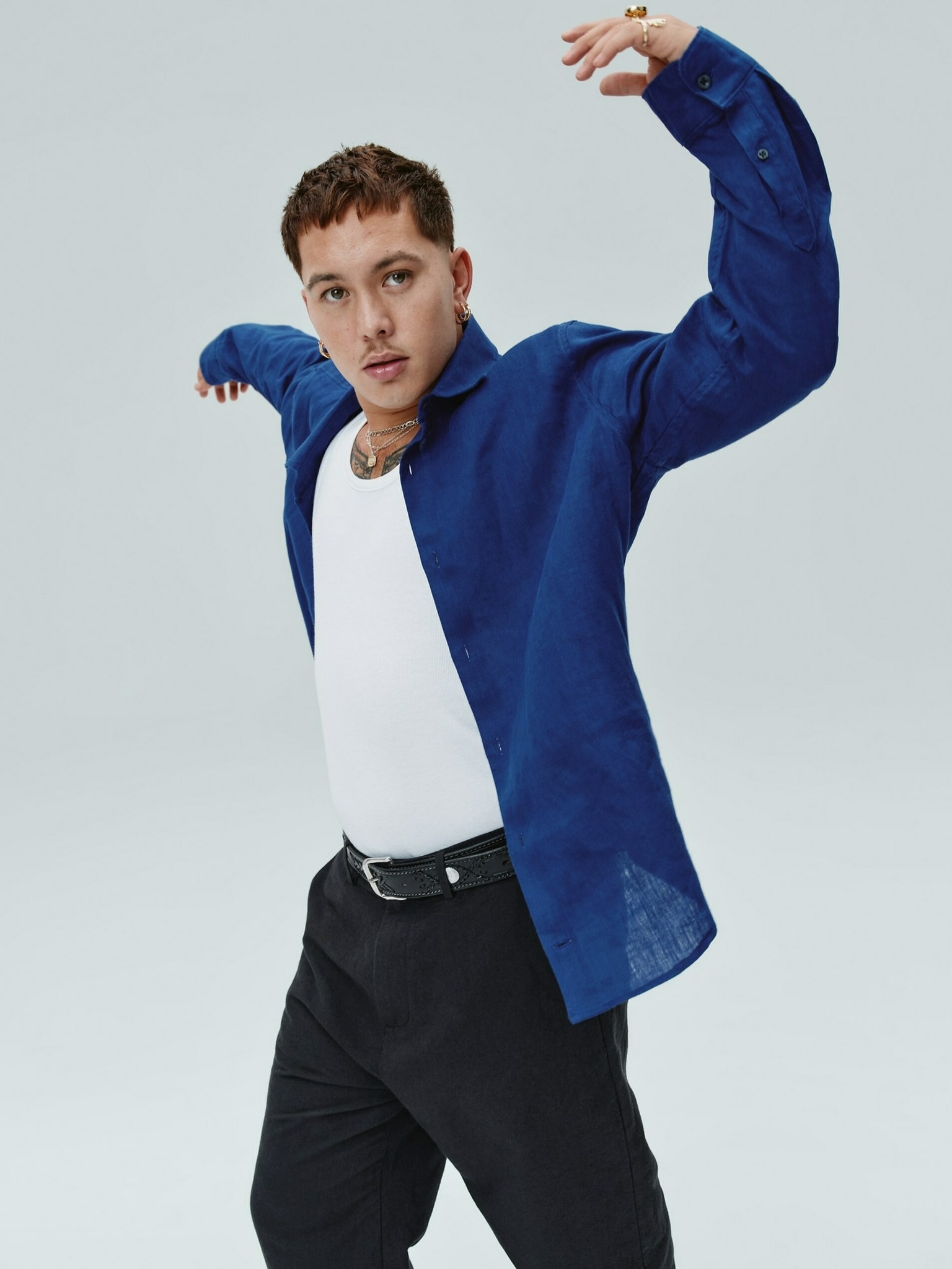 Celio Daflix plava muška lanena košulja