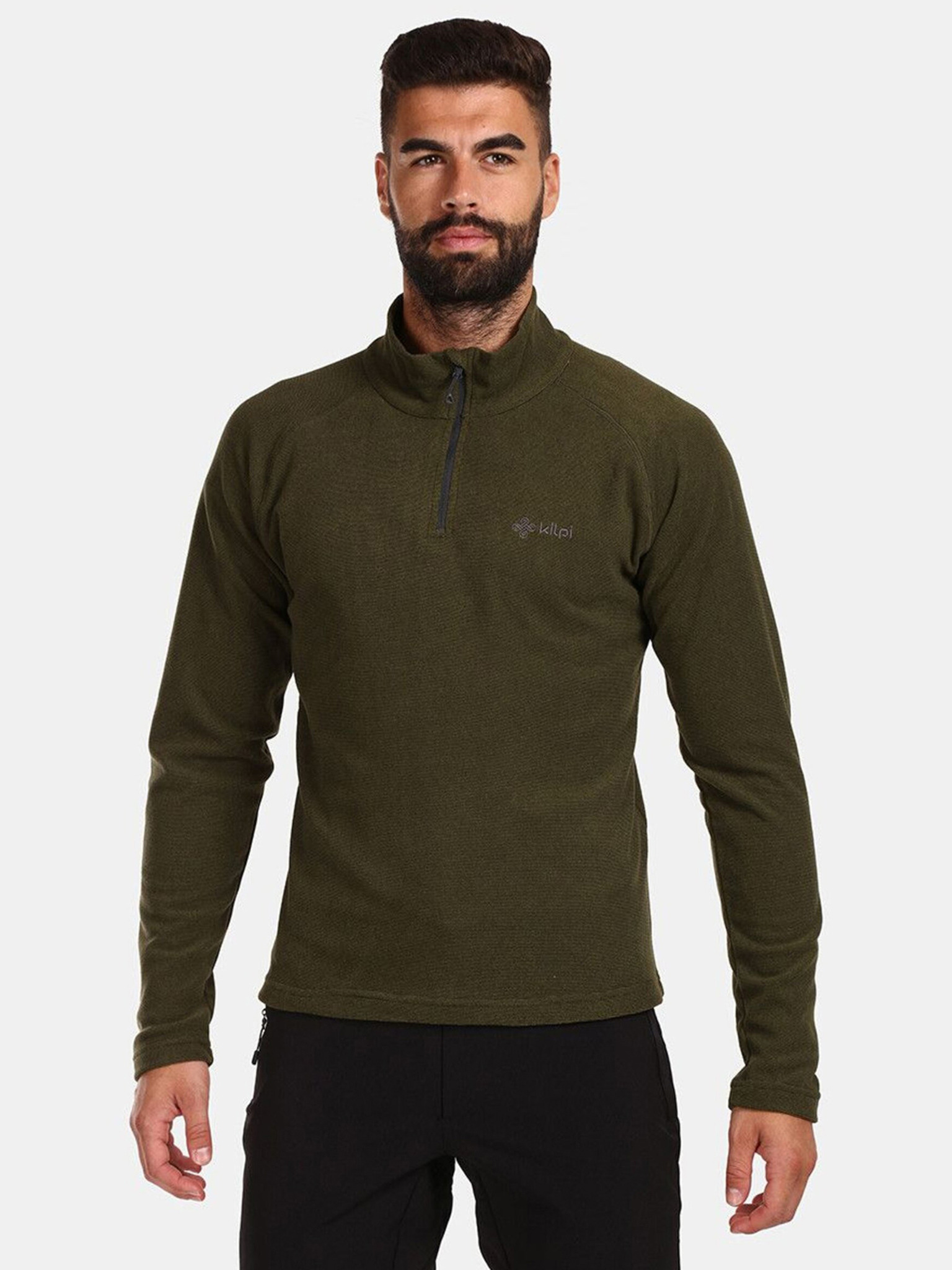 Muška dukserica s visokim ovratnikom i prugama - maslinasta