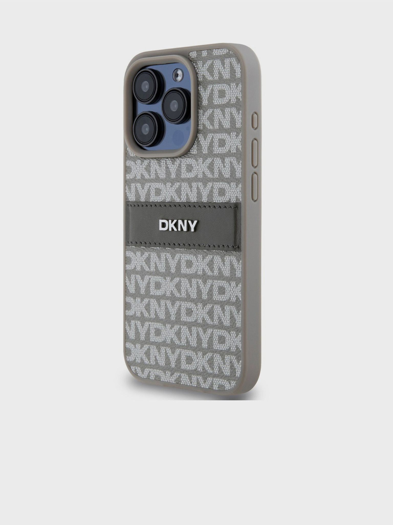DKNY PU kožna stražnja maska s ponavljajućim uzorkom u tonskim prugama za iPhone 16 Pro bež