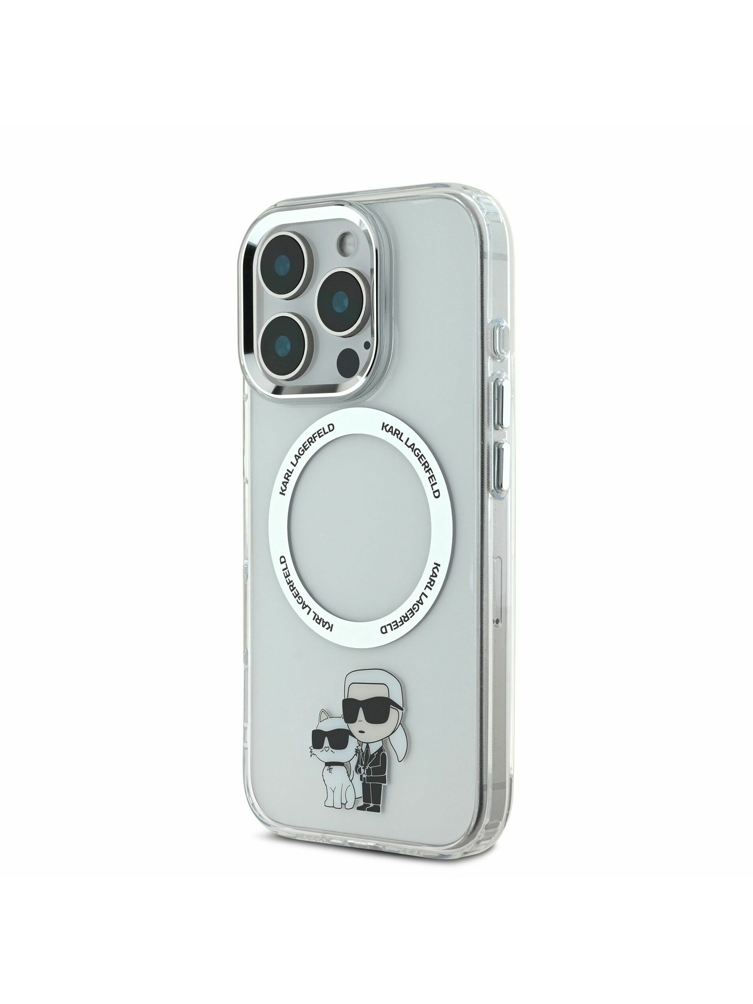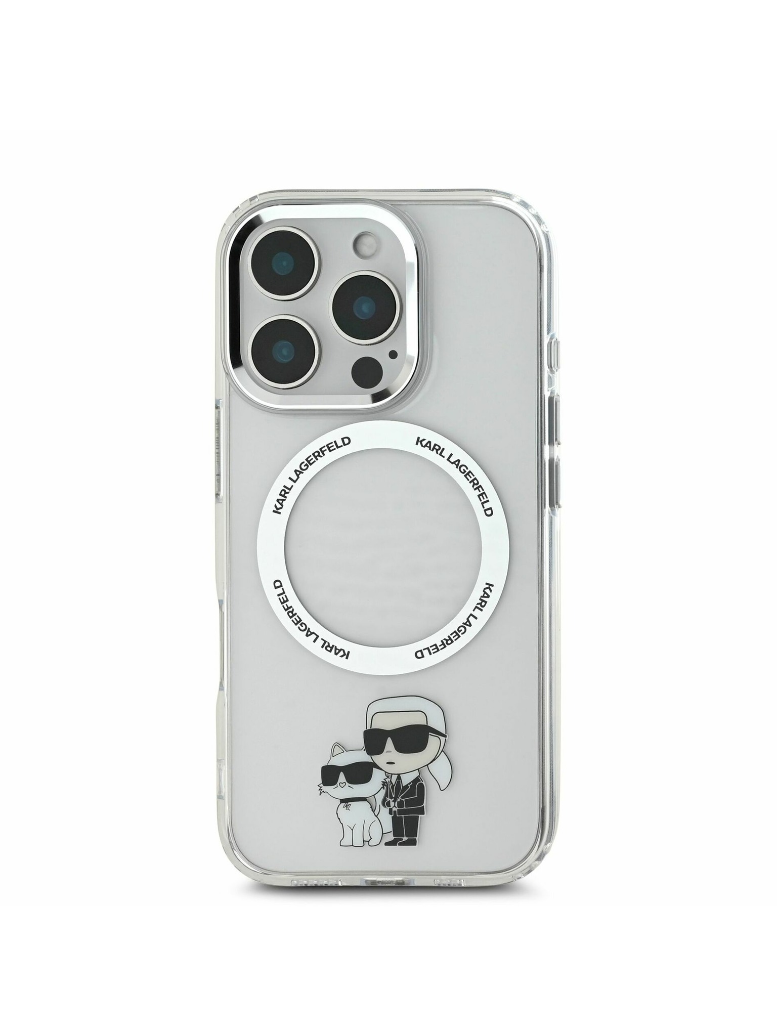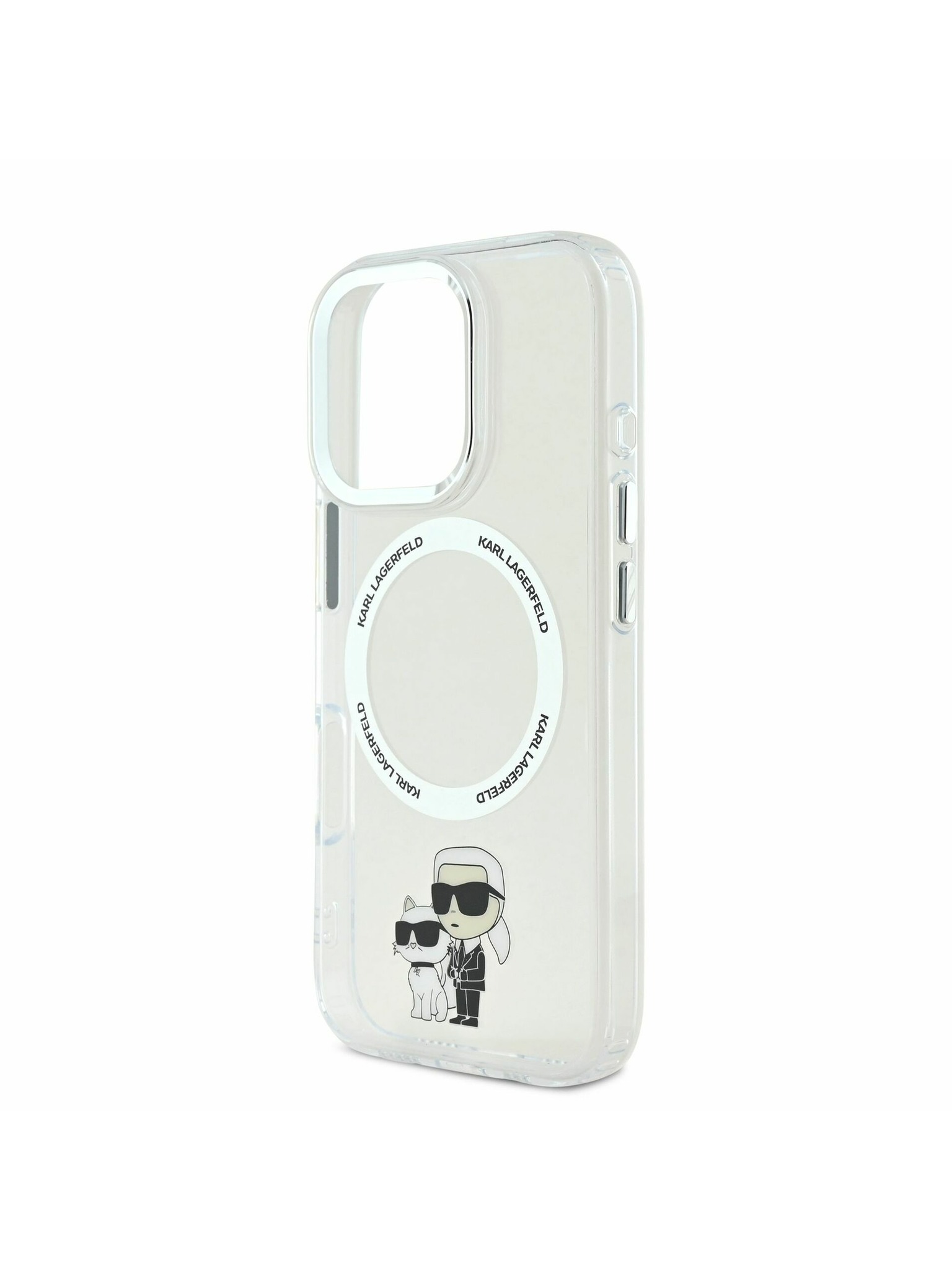 Karl Lagerfeld IML Glitter Karl and Choupette Sketch MagSafe Stražnji poklopac za iPhone 16 Pro prozirni