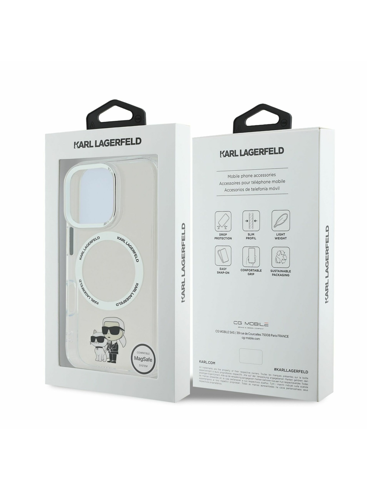Karl Lagerfeld IML Glitter Karl and Choupette Sketch MagSafe Stražnji poklopac za iPhone 16 prozirni