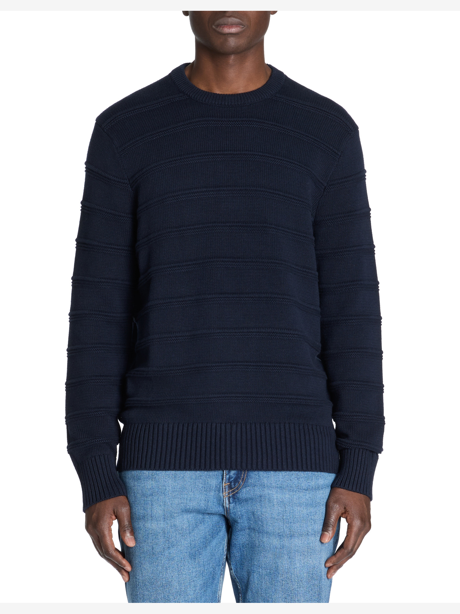 Muški pleteni pulover sa strukturiranim točkicama - tamnoplava Ombre odjeća