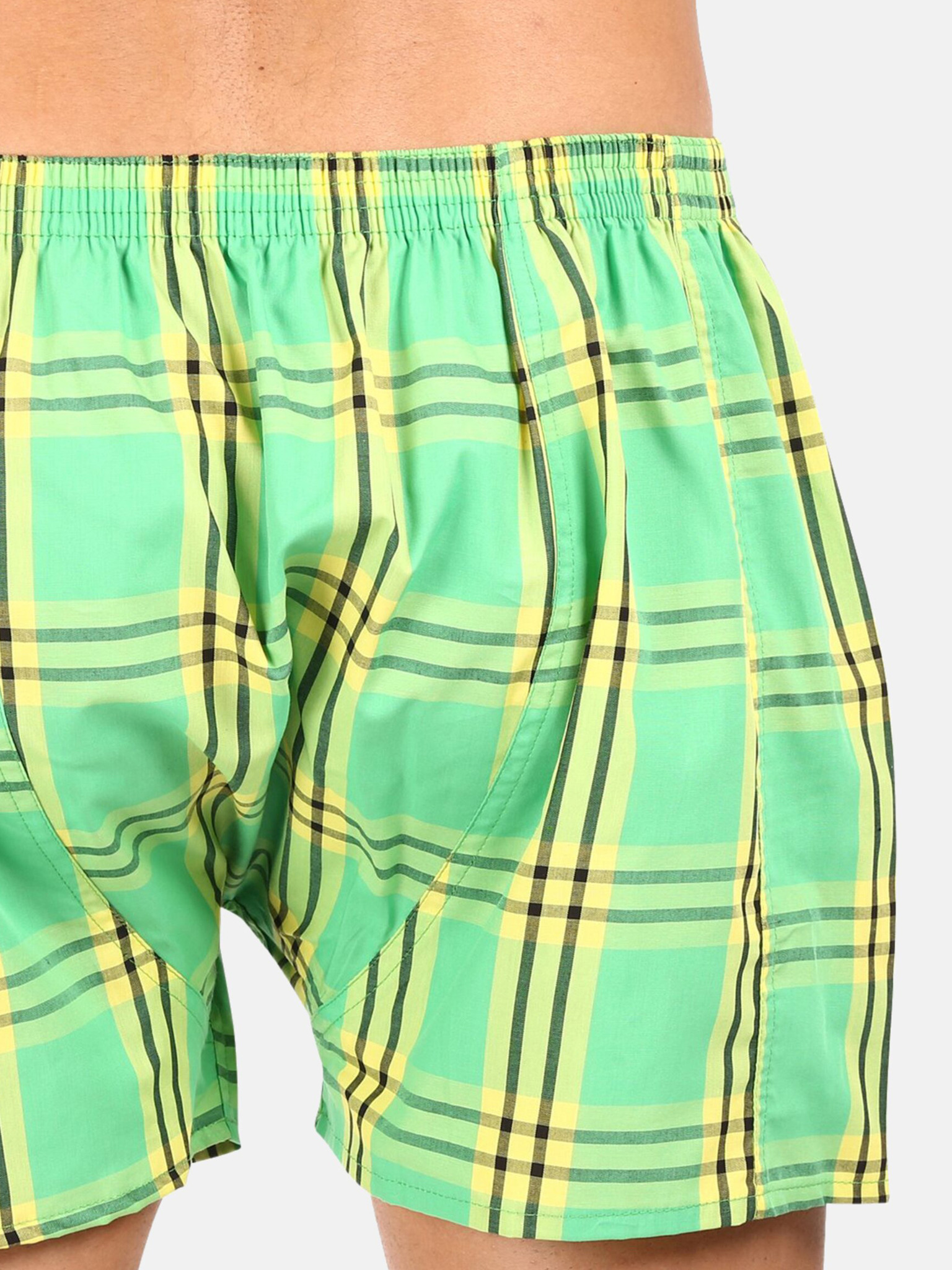 Komplet od tri muške kratke hlače na karo u crvenoj, žutoj i zelenoj boji STYX