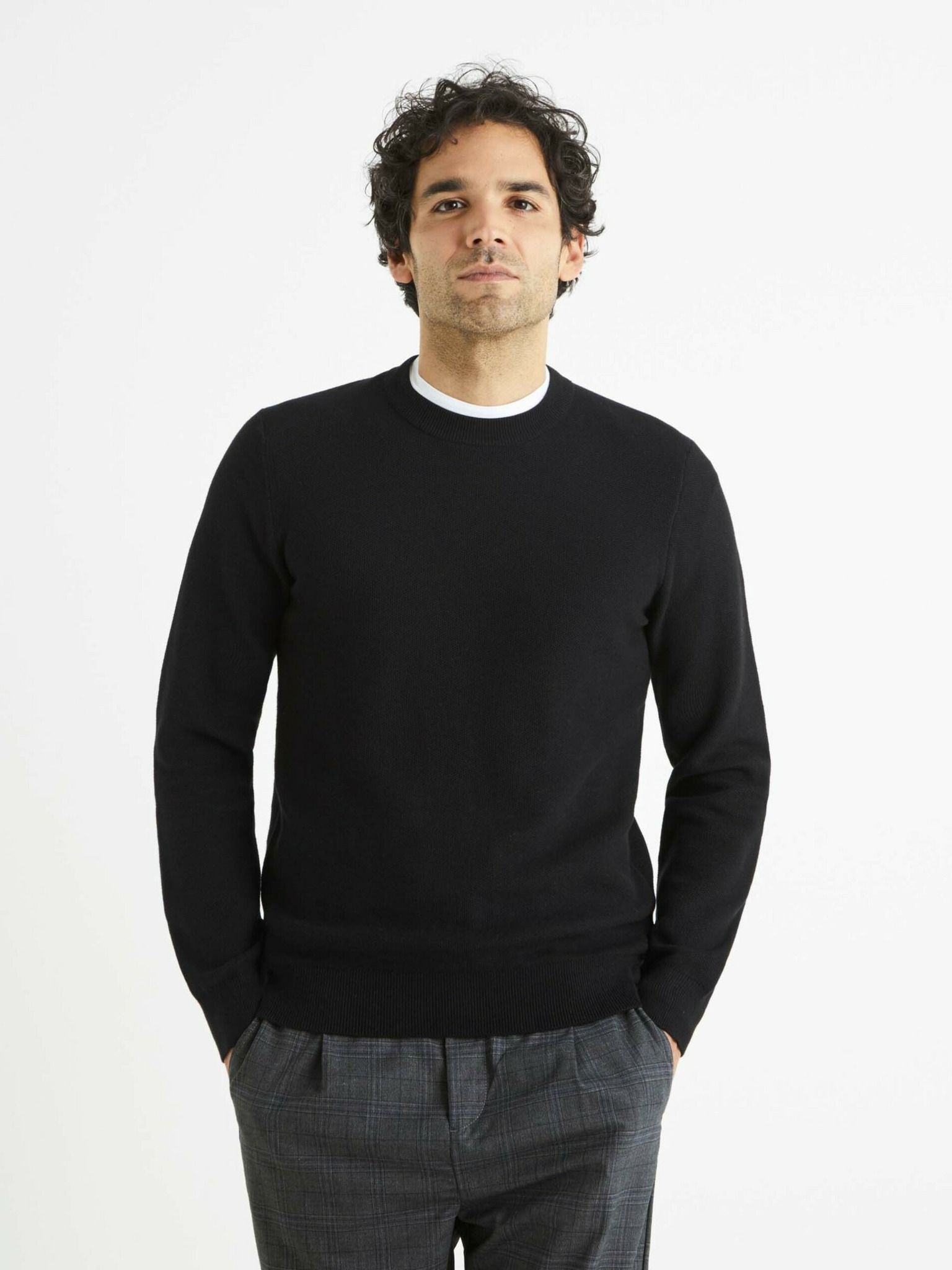 Muški pleteni pulover sa strukturiranim točkicama - tamnoplava Ombre odjeća