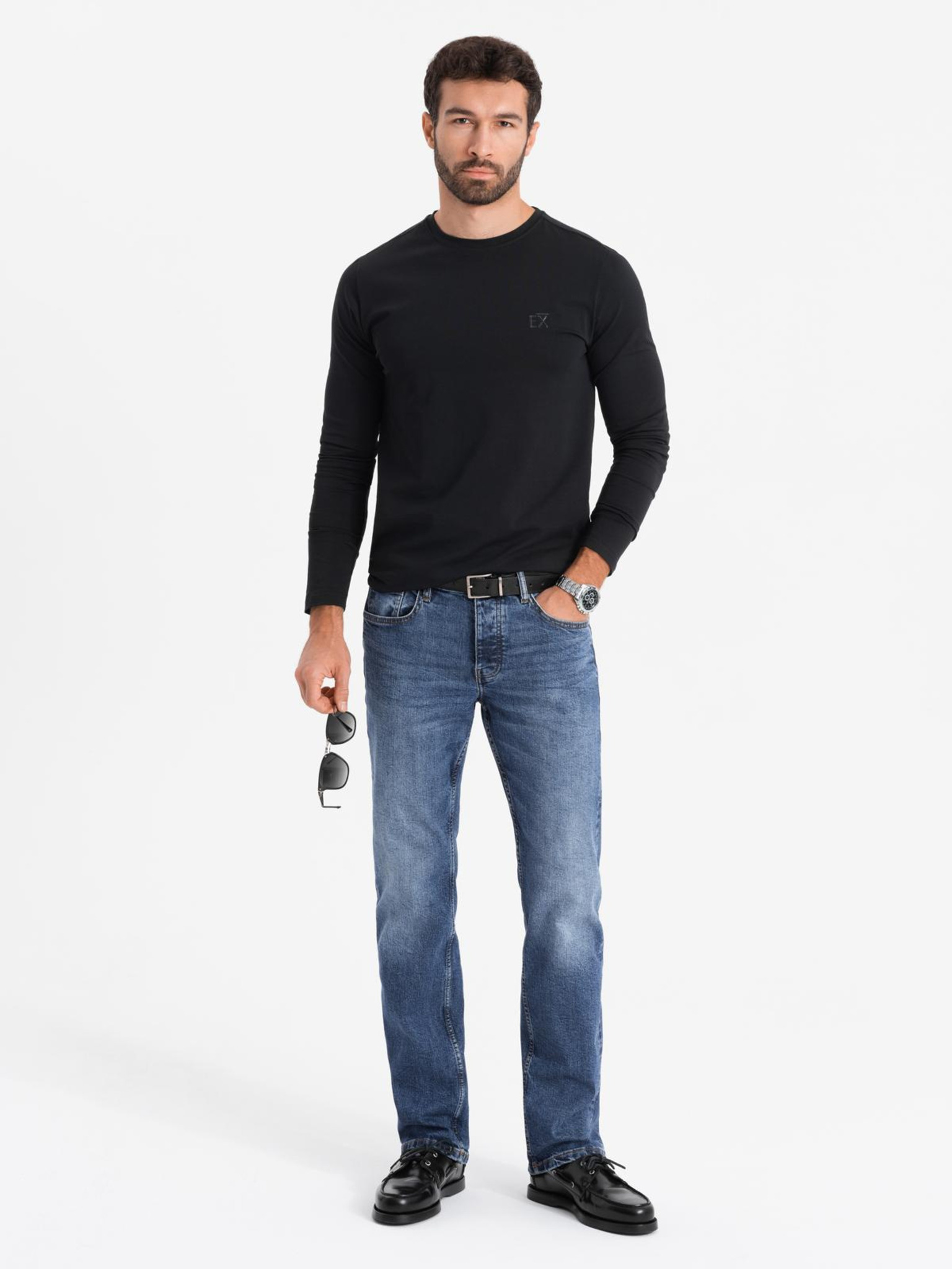 Muška pamučna majica s dugim rukavima, rubovima i printom na prsima Ombre Clothing