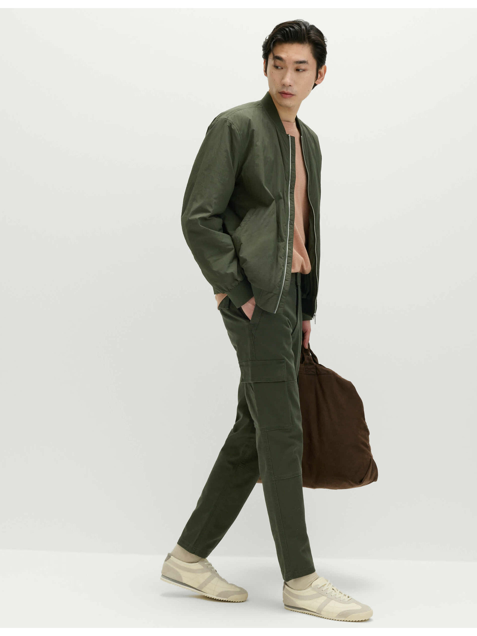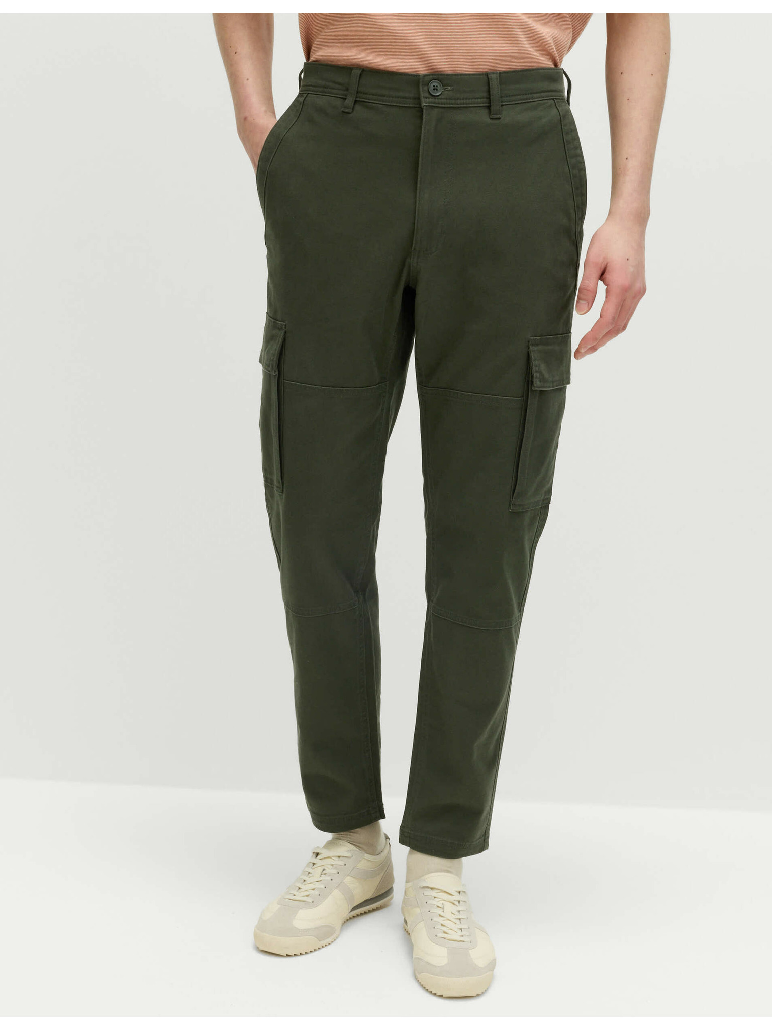 Muške cargo hlače s ravnim nogavicama i patentnim džepovima - maslinasta boja V2 P1517 Ombre Clothing