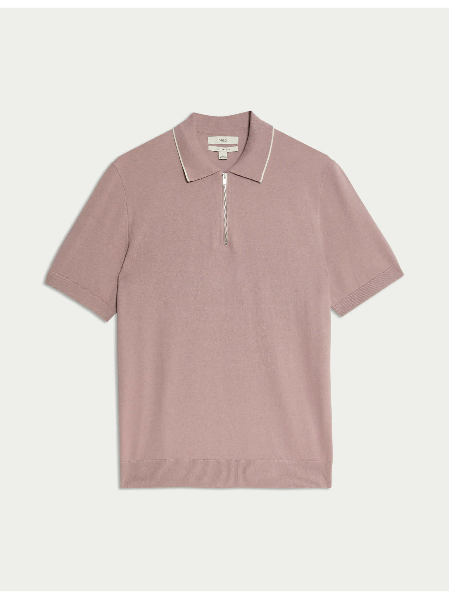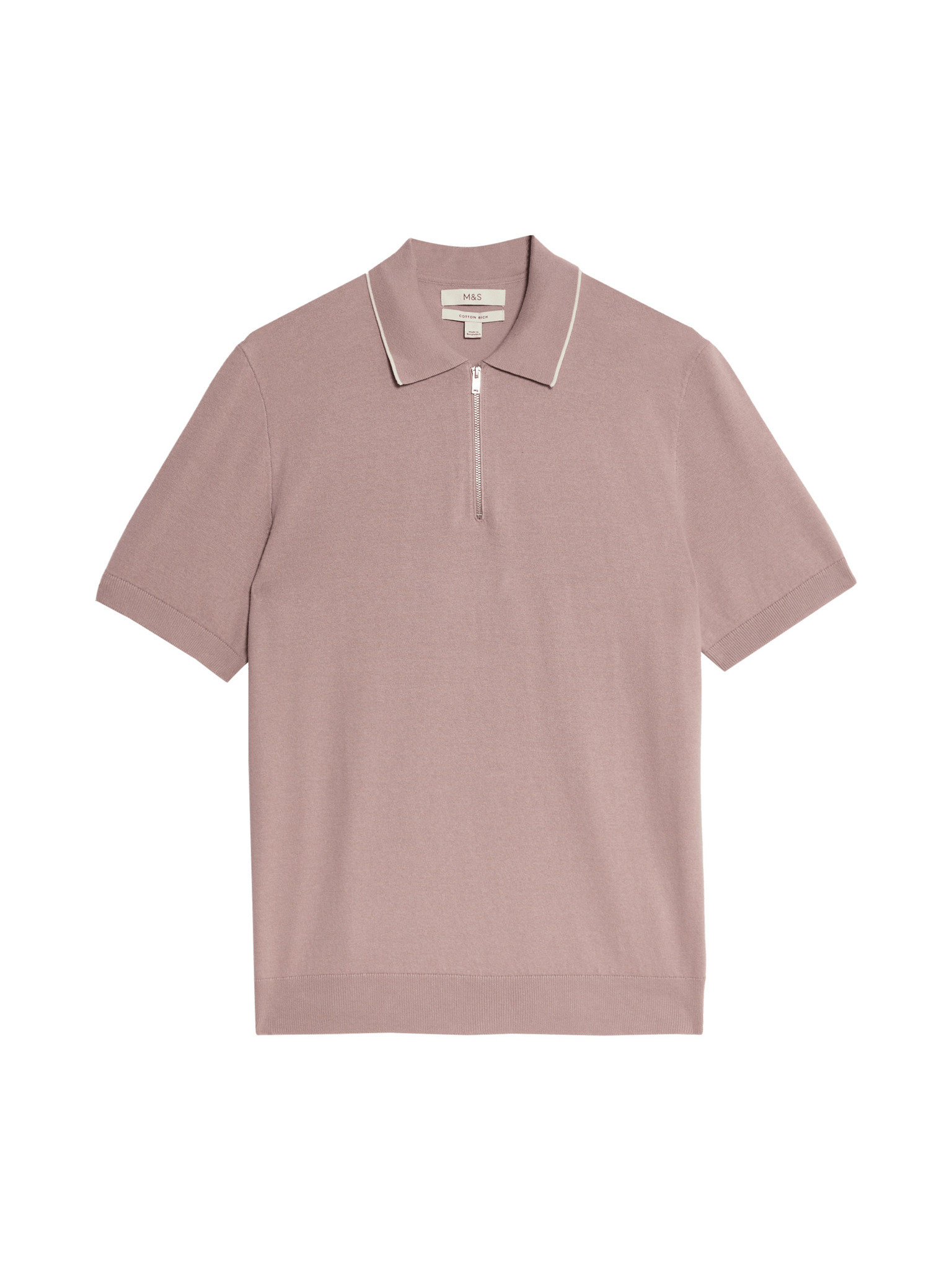 Žakard polo majica s visokim udjelom pamuka i zatvaračem Marks & Spencer smeđa