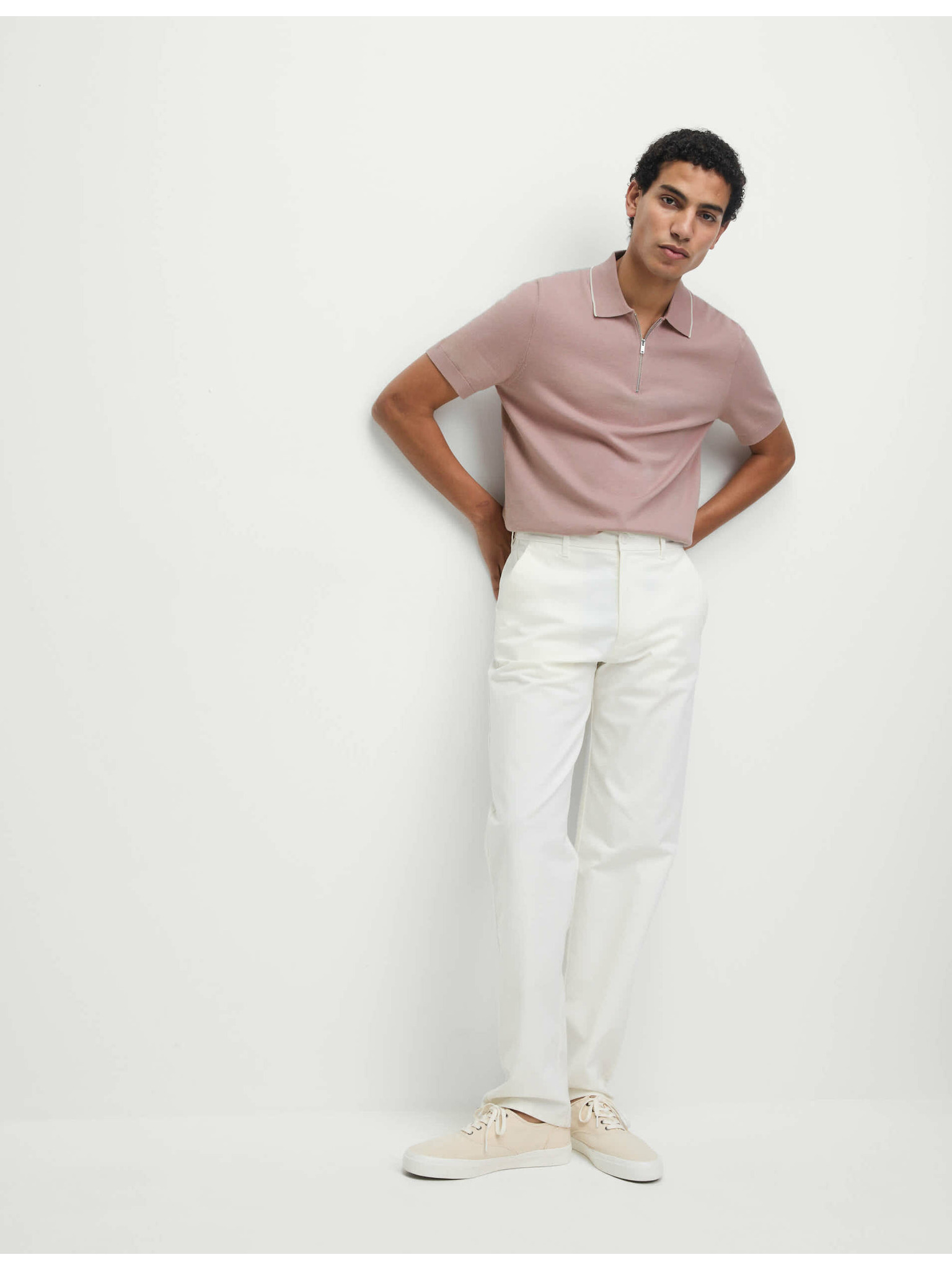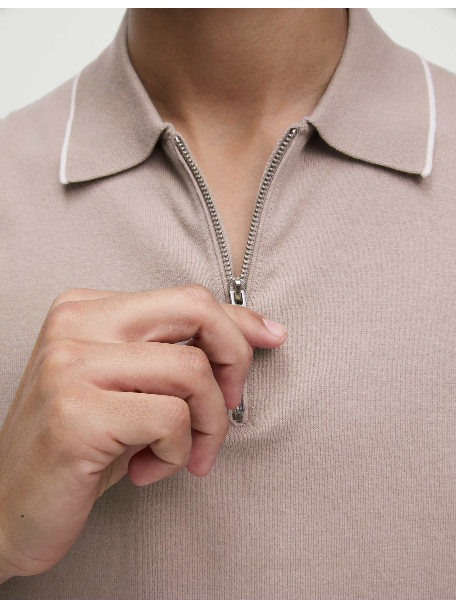 Muška polo majica s patentom - svijetlo smeđa