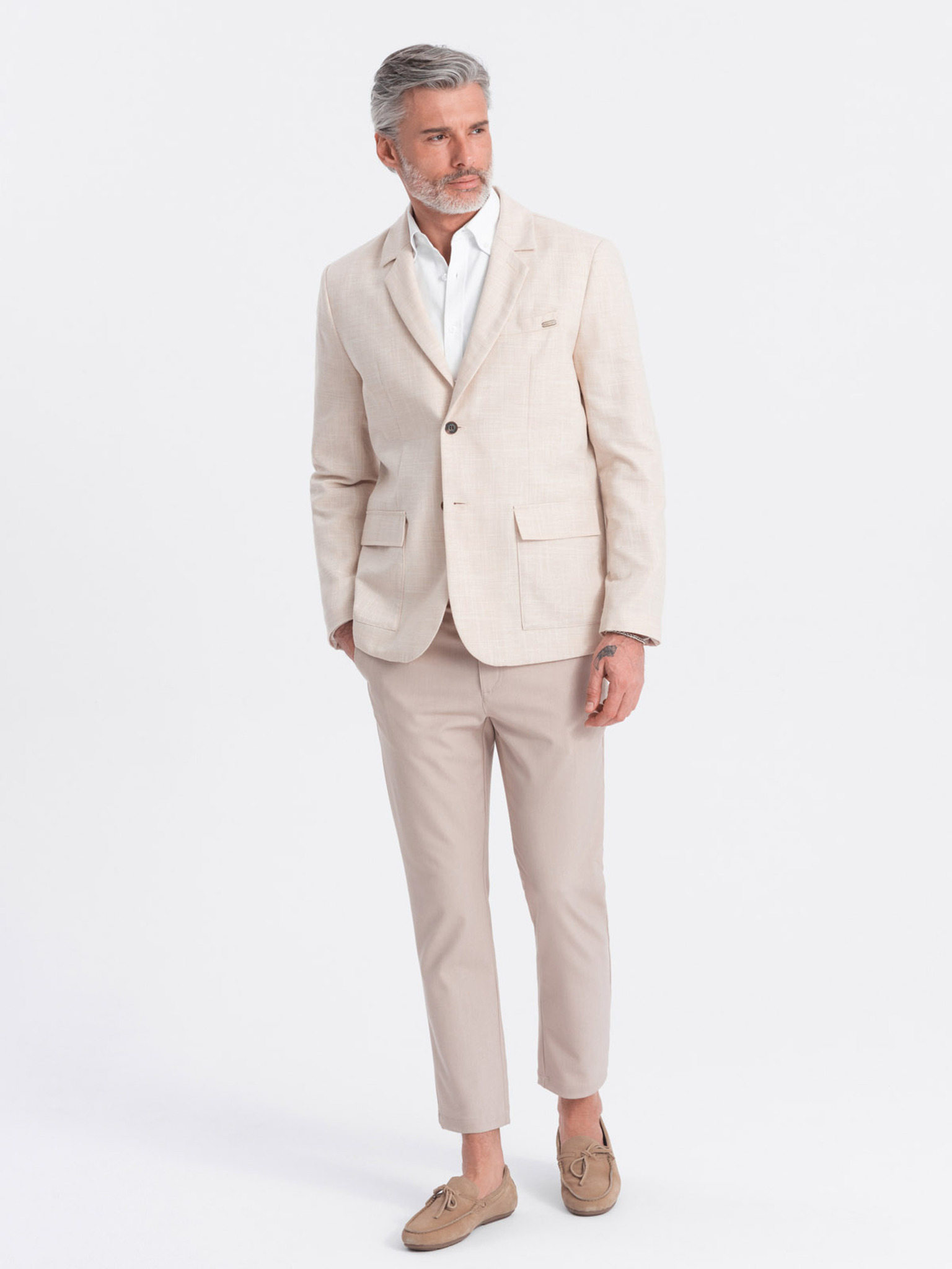Bež muški sako s džepovima Ombre Clothing
