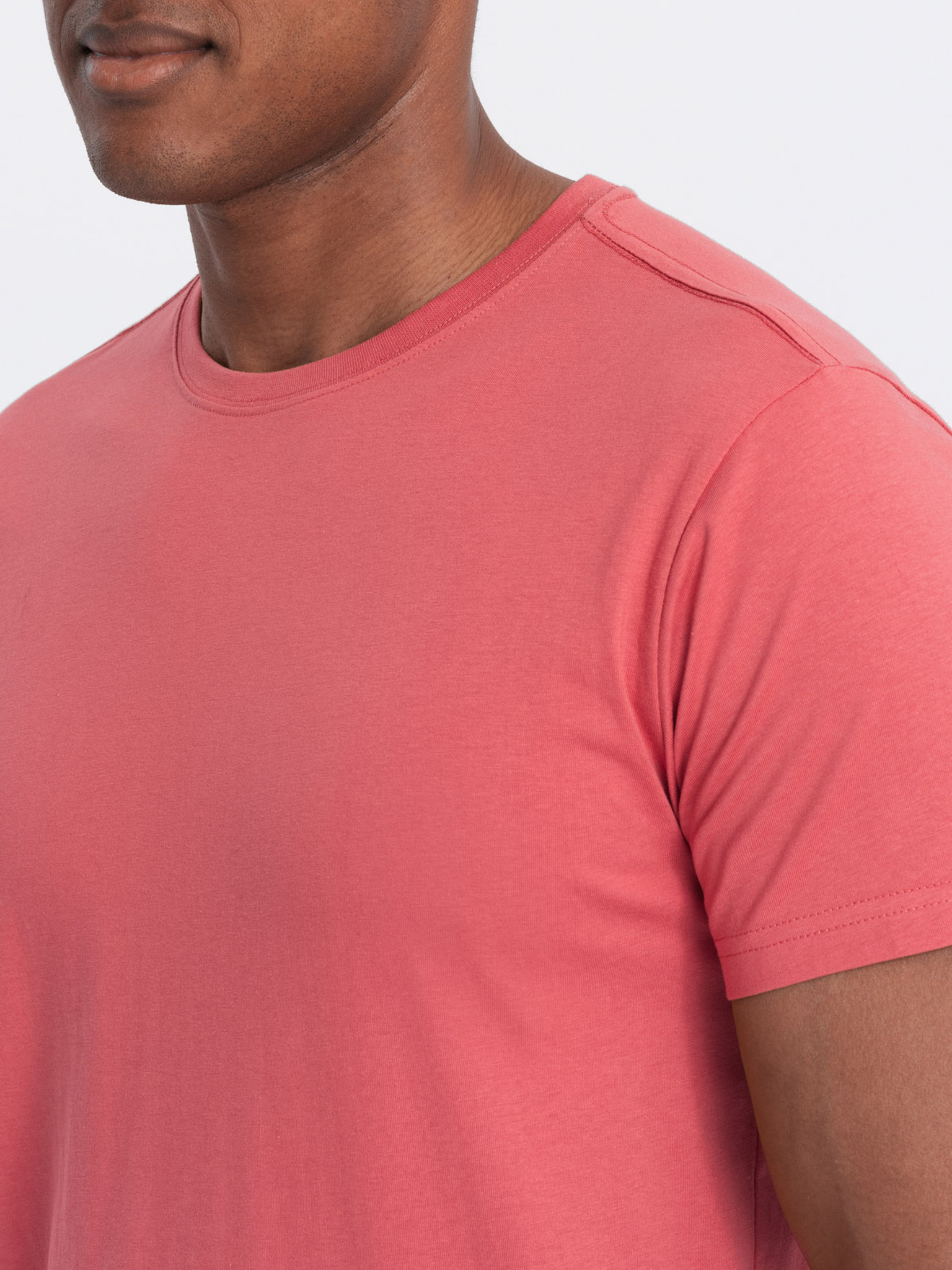 Muška klasična pamučna majica BASIC s izrezom - ružičasta