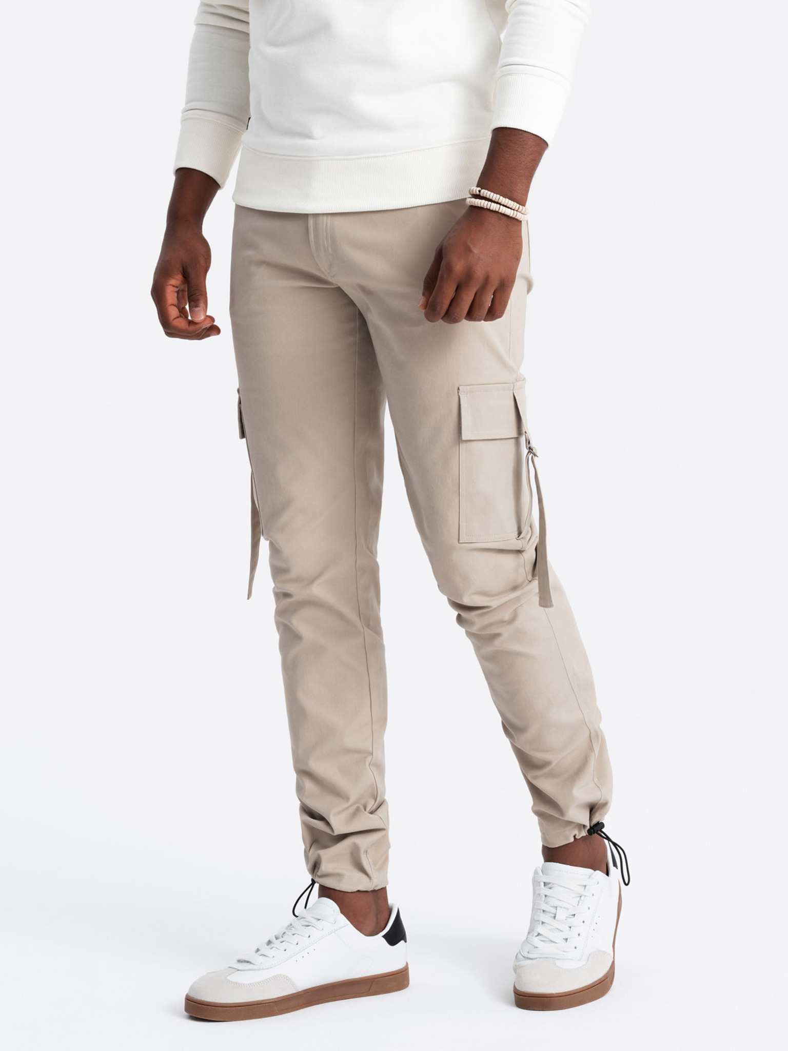 Bež muške kargo jogger hlače Ombre Clothing
