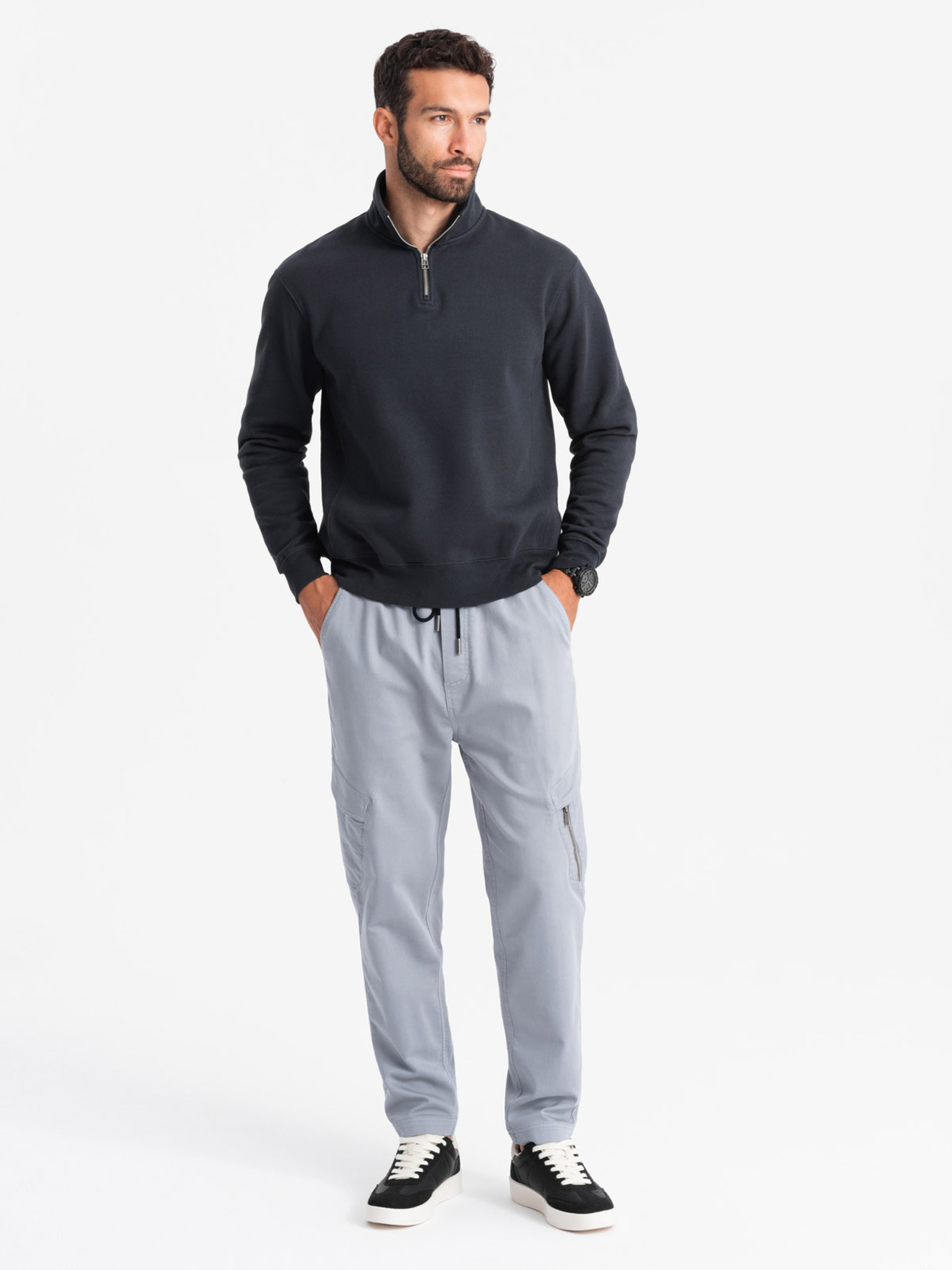 Muške trenerke s rebrastim manžetama i dekorativnim patentom Ombre Clothing