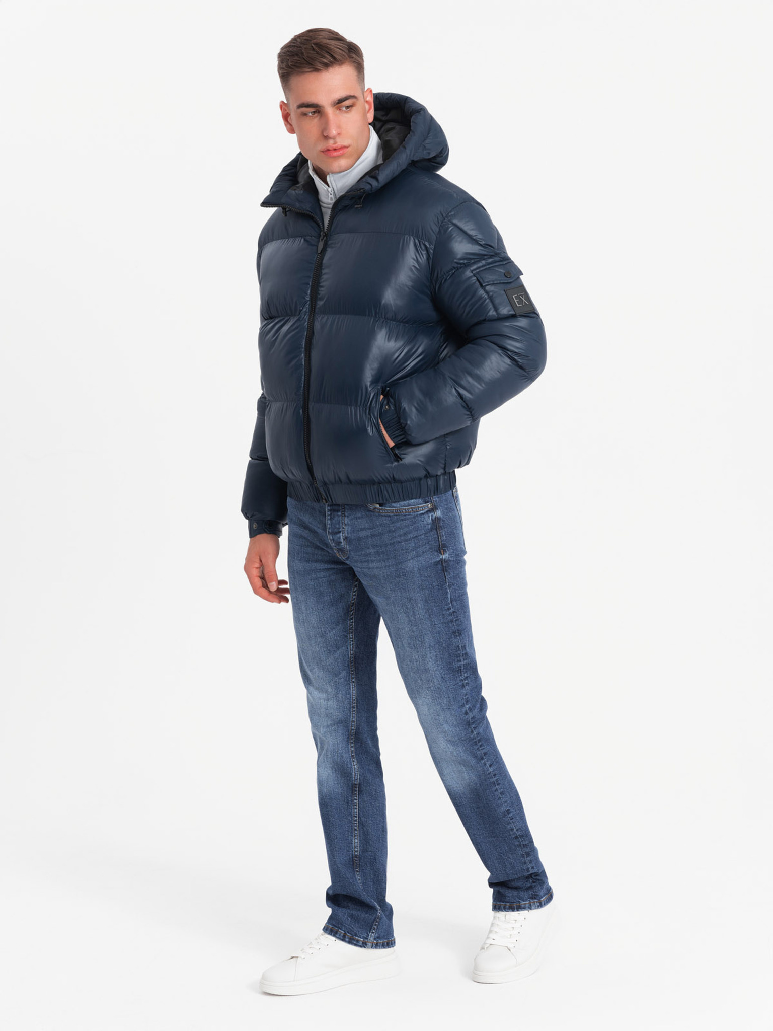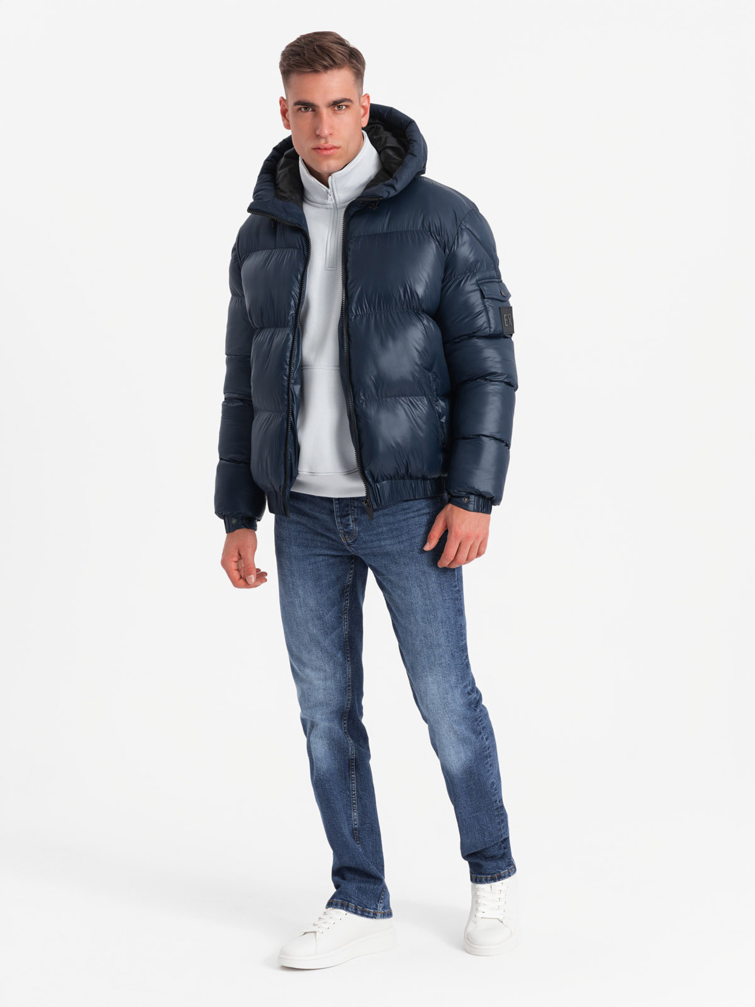 Tamnoplava muška prošivena zimska jakna Ombre odjeća