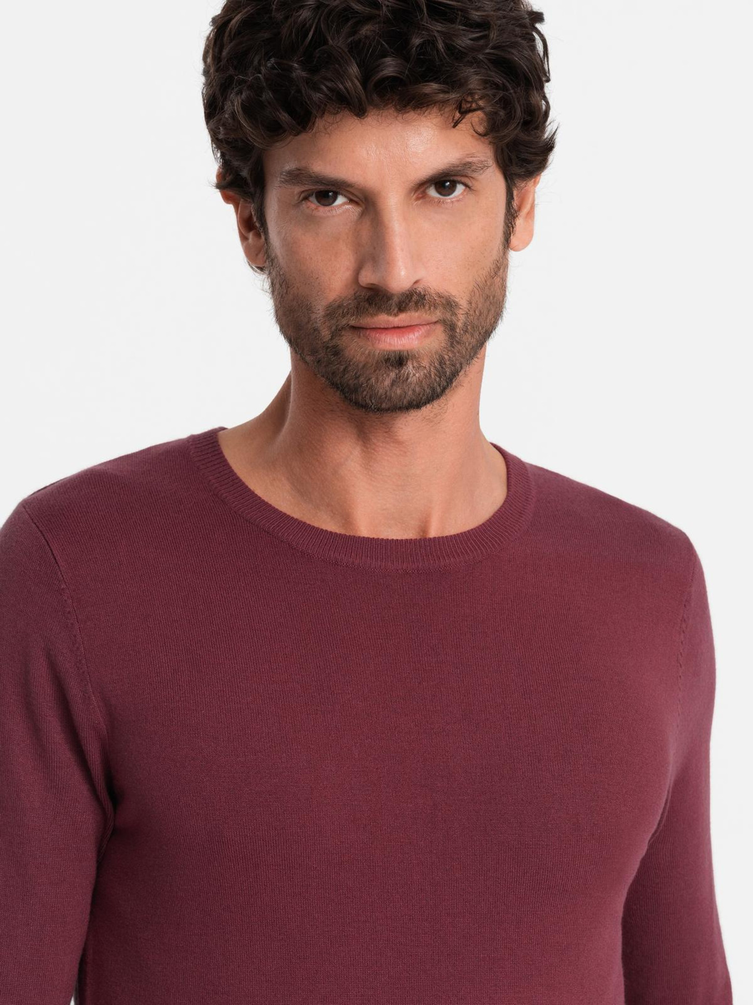 Muški pulover s okruglim izrezom od elastične pletenine u klasičnoj vezi - bordo V4 OM-SWSW-0183 Ombre Clothing