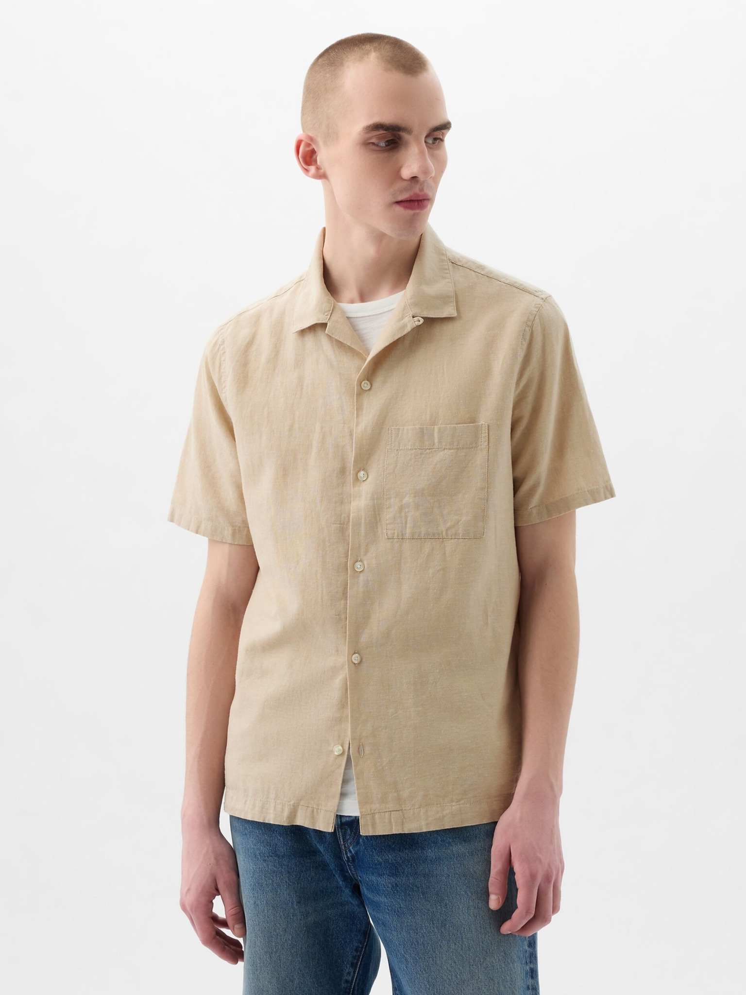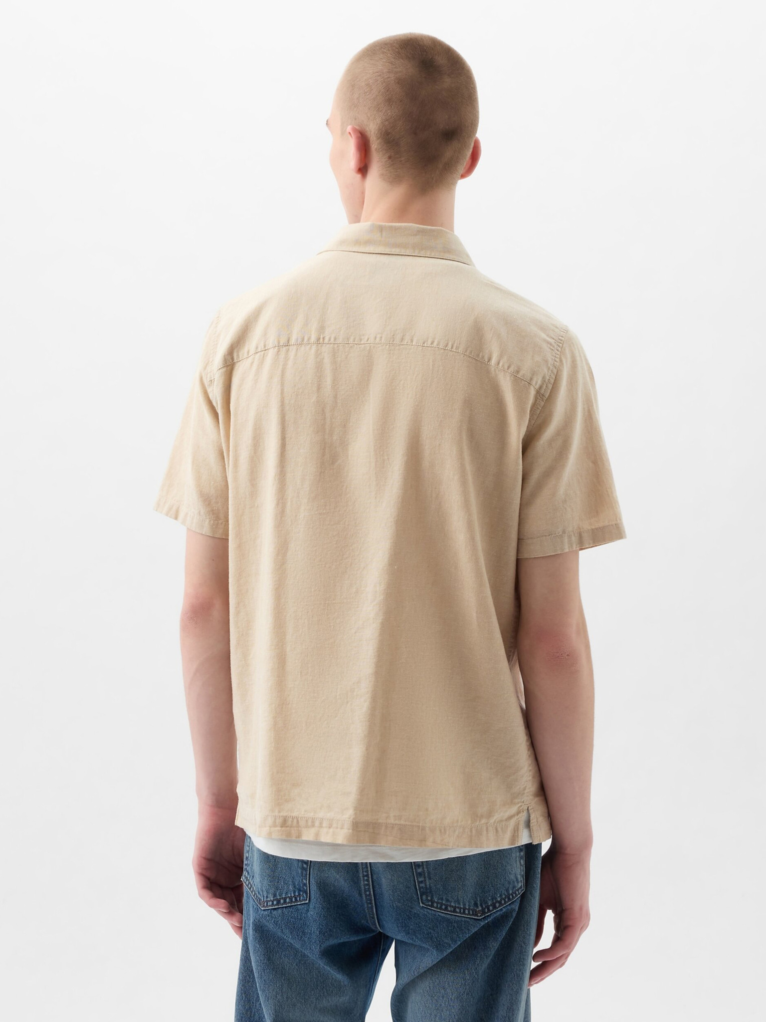 Muška košulja s kratkim rukavima i kubanskim ovratnikom bež Ombre odjeća