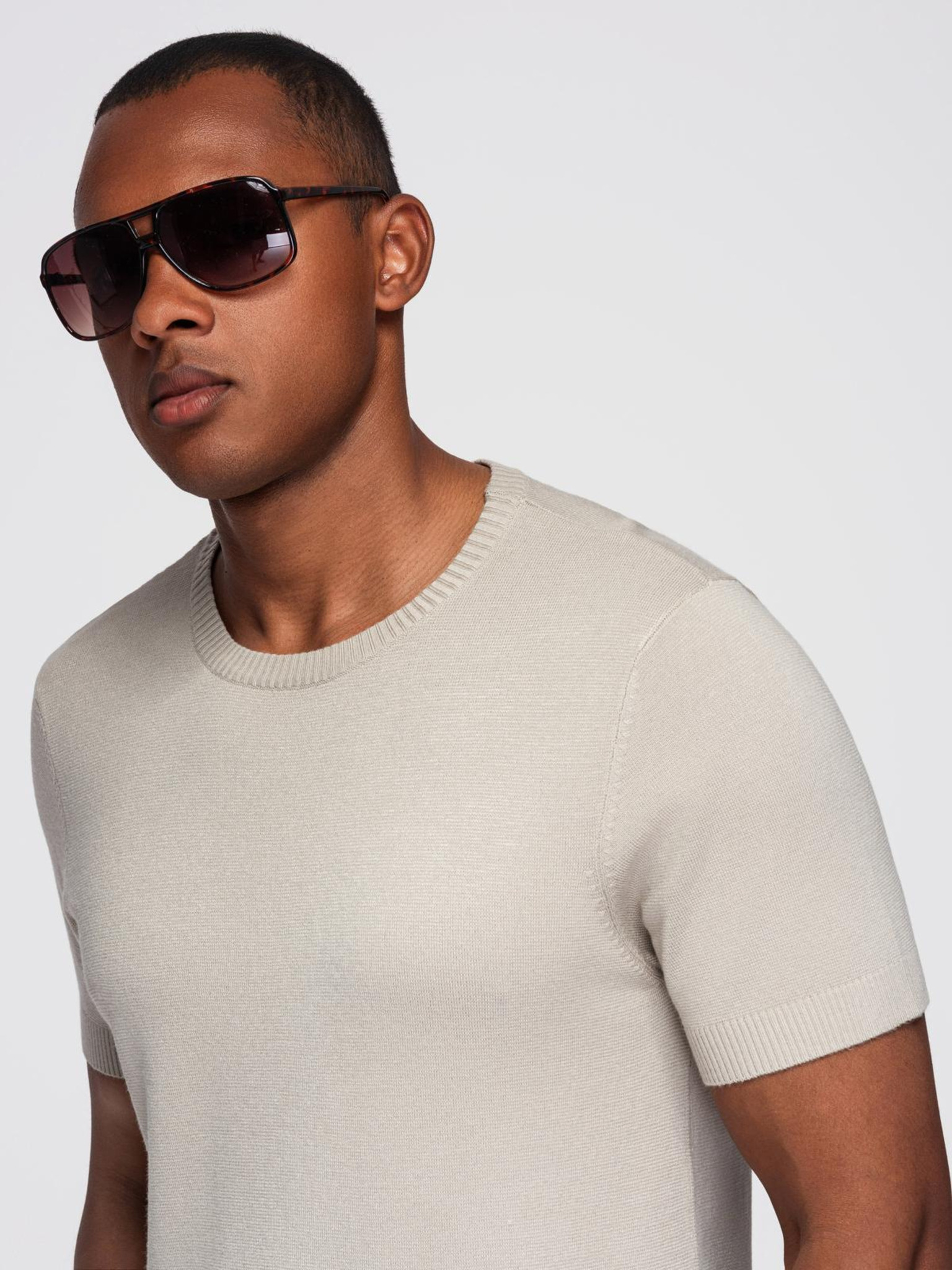 Muška pamučna polo majica od strukturirane pletenine - bež