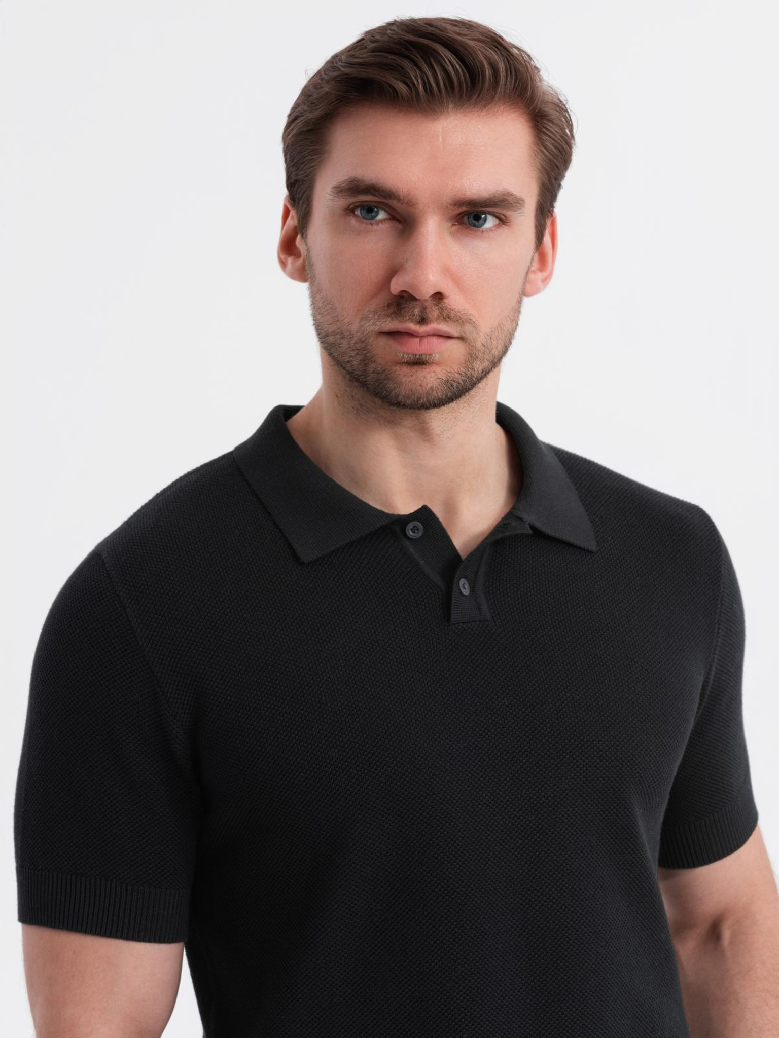 Muška pamučna polo majica od strukturirane pletenine - crna