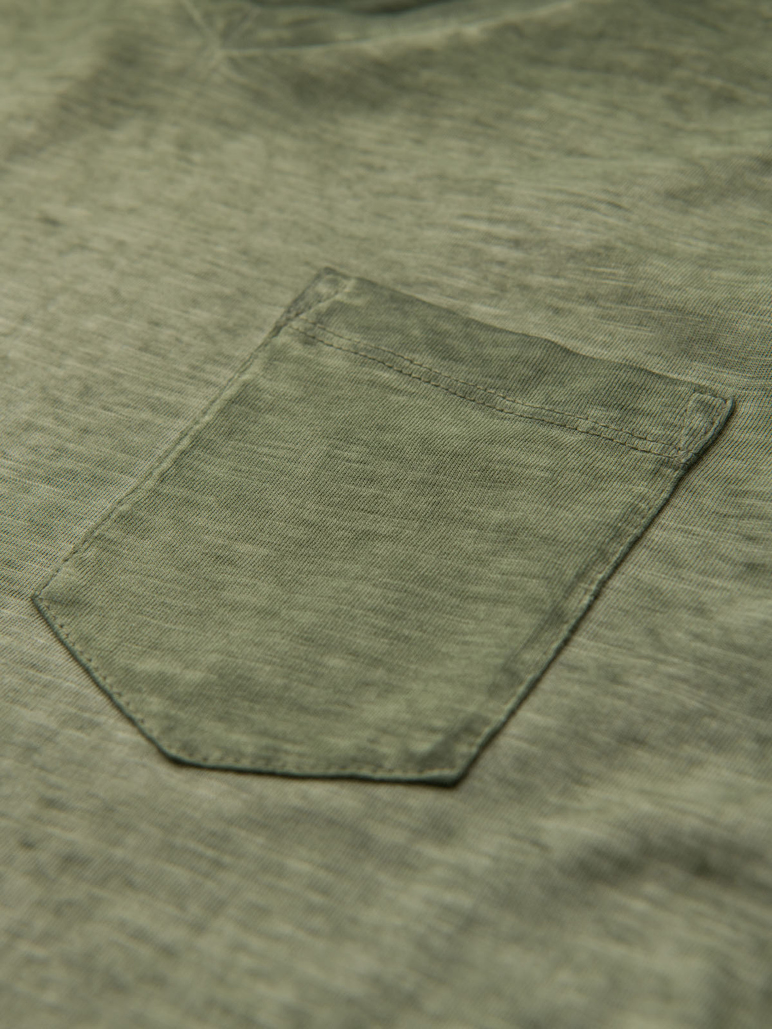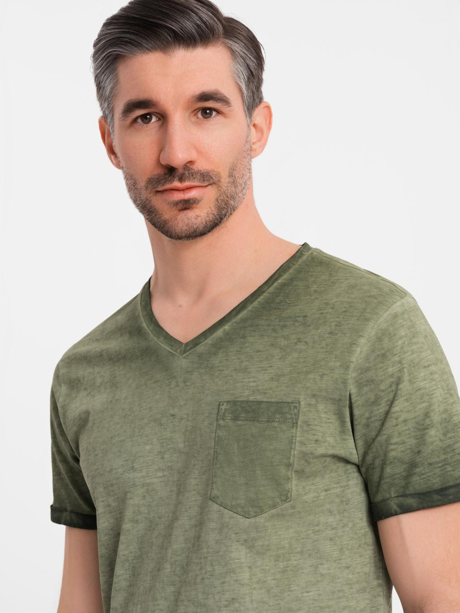 Muška pamučna majica s V-izrezom i opranim efektom - maslinasta