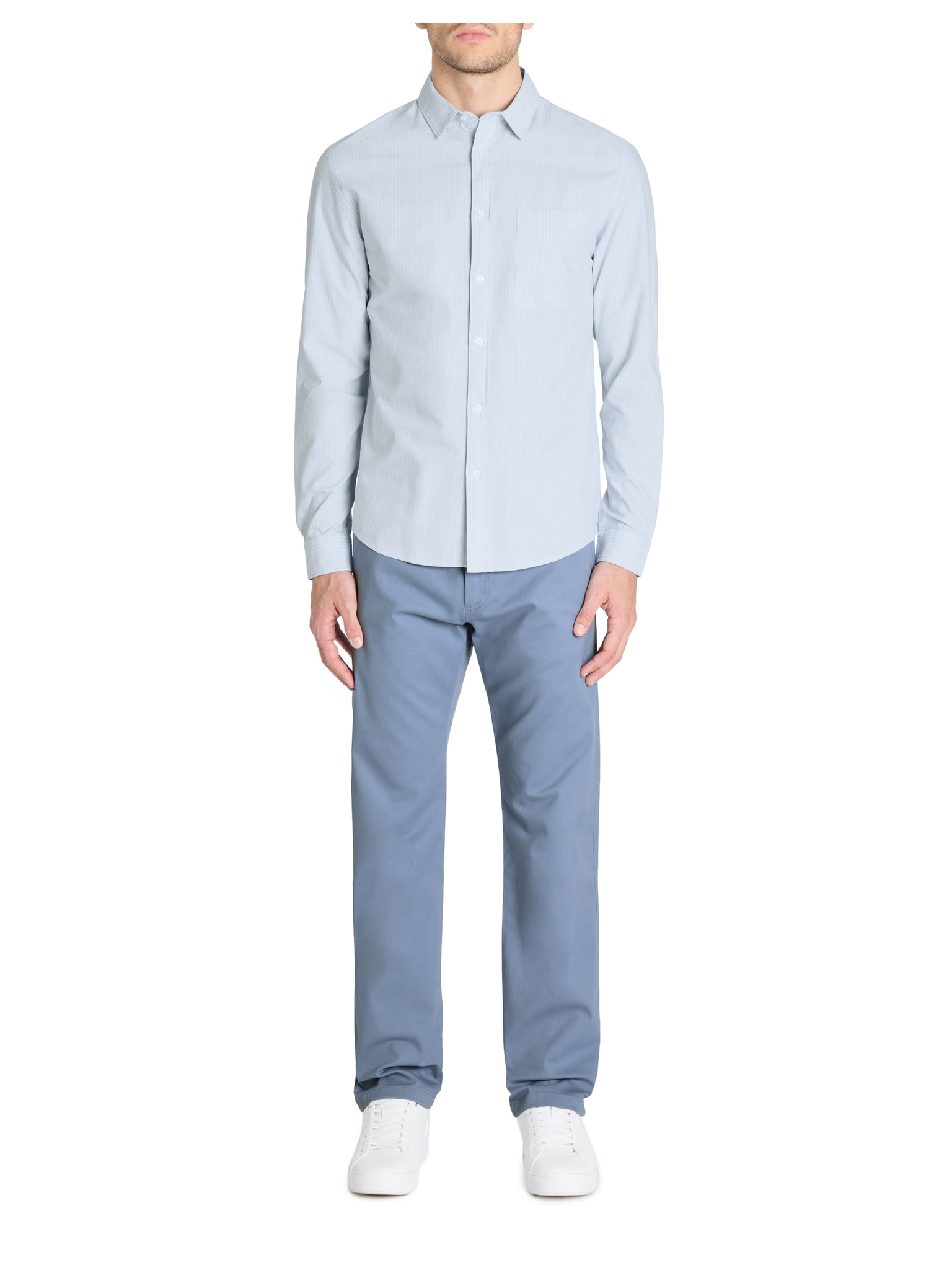 Plavi muški chino hlače s mješavinom lana Ombre odjeća