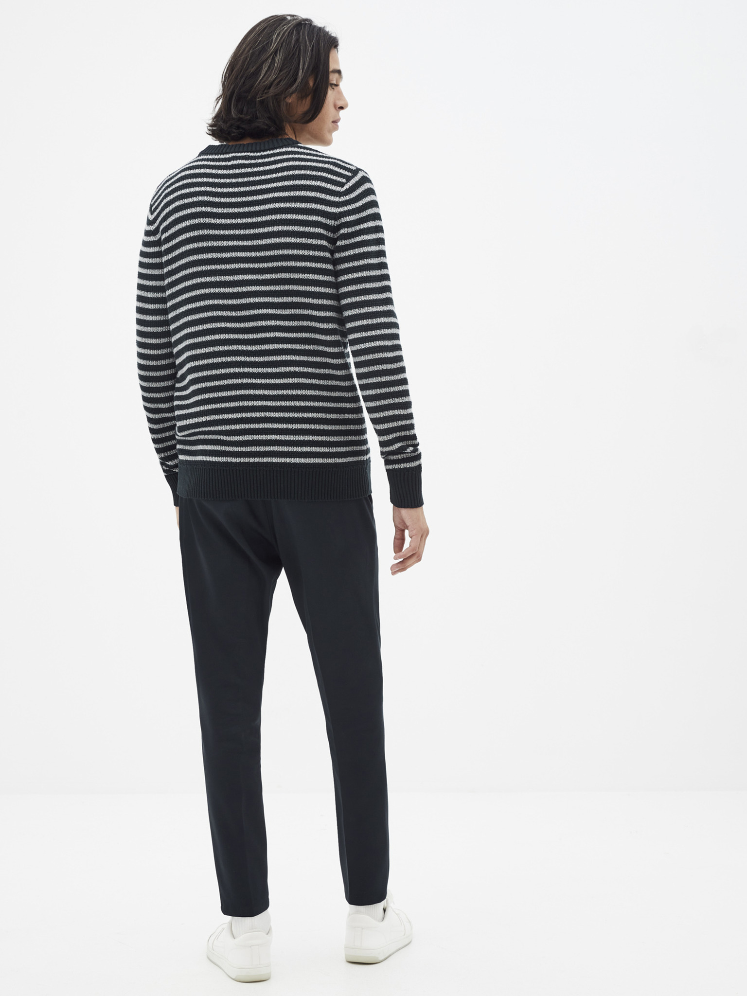 Muški pleteni pulover sa strukturiranim točkicama - tamnoplava Ombre odjeća